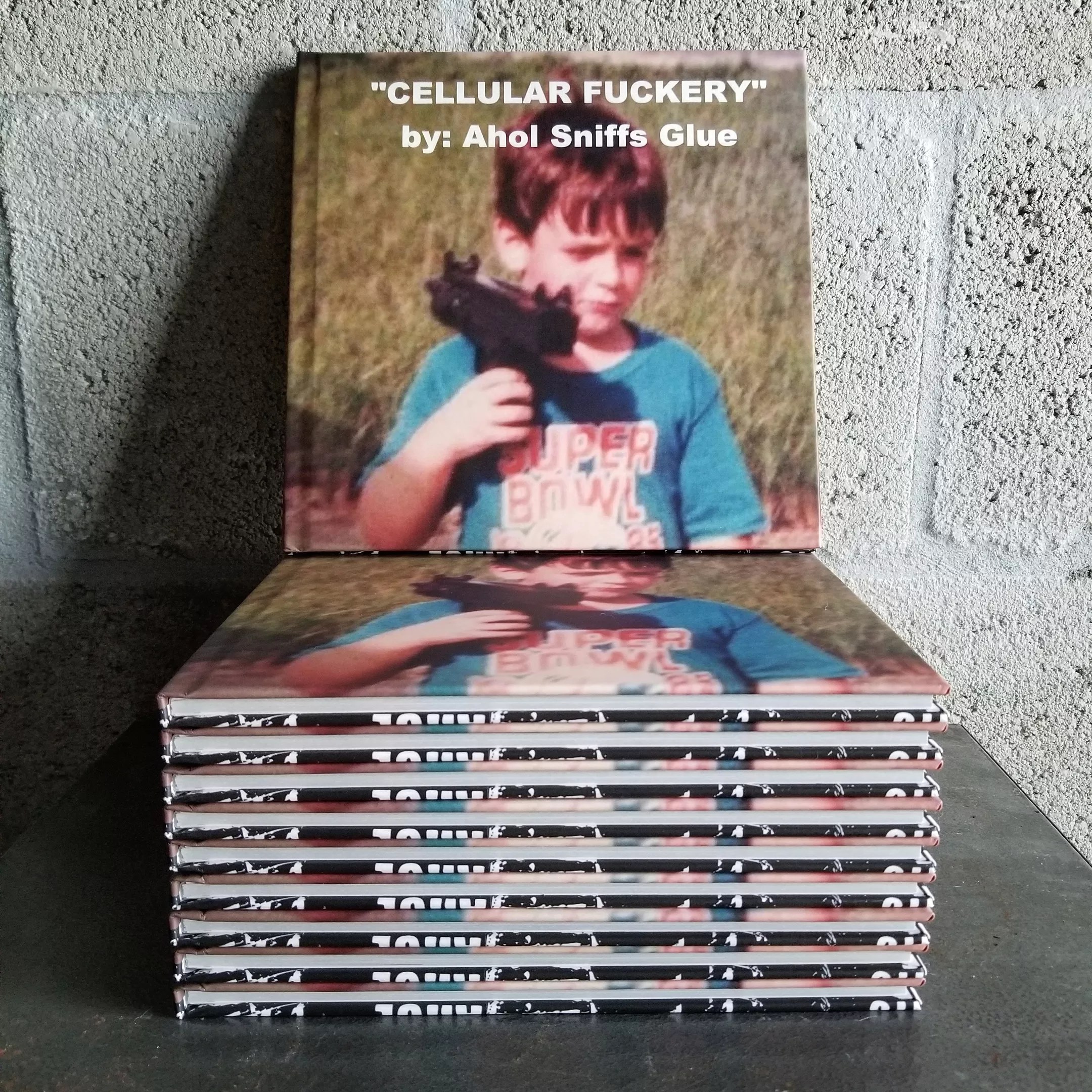 “I actually hate reading, so the only words are that it says ‘Cellular Fuckery’ on the title and that it’s ‘by Ahol Sniffs Glue,'” he says with a chuckle.