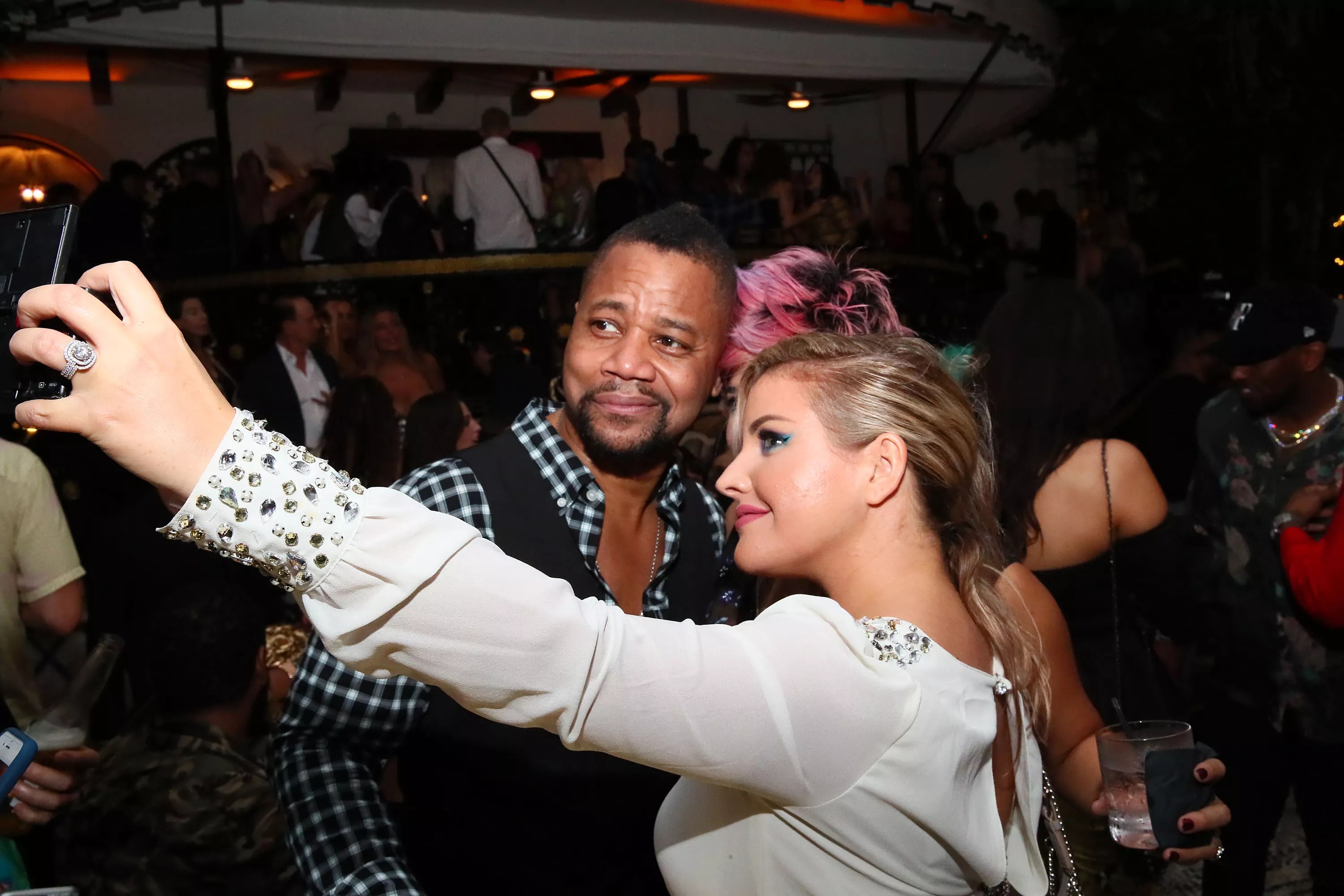 Cuba Gooding Jr. posed for selfies at the 25th-anniversary celebration of the vintage shop What Goes Around Comes Around, held at the Versace Mansion.