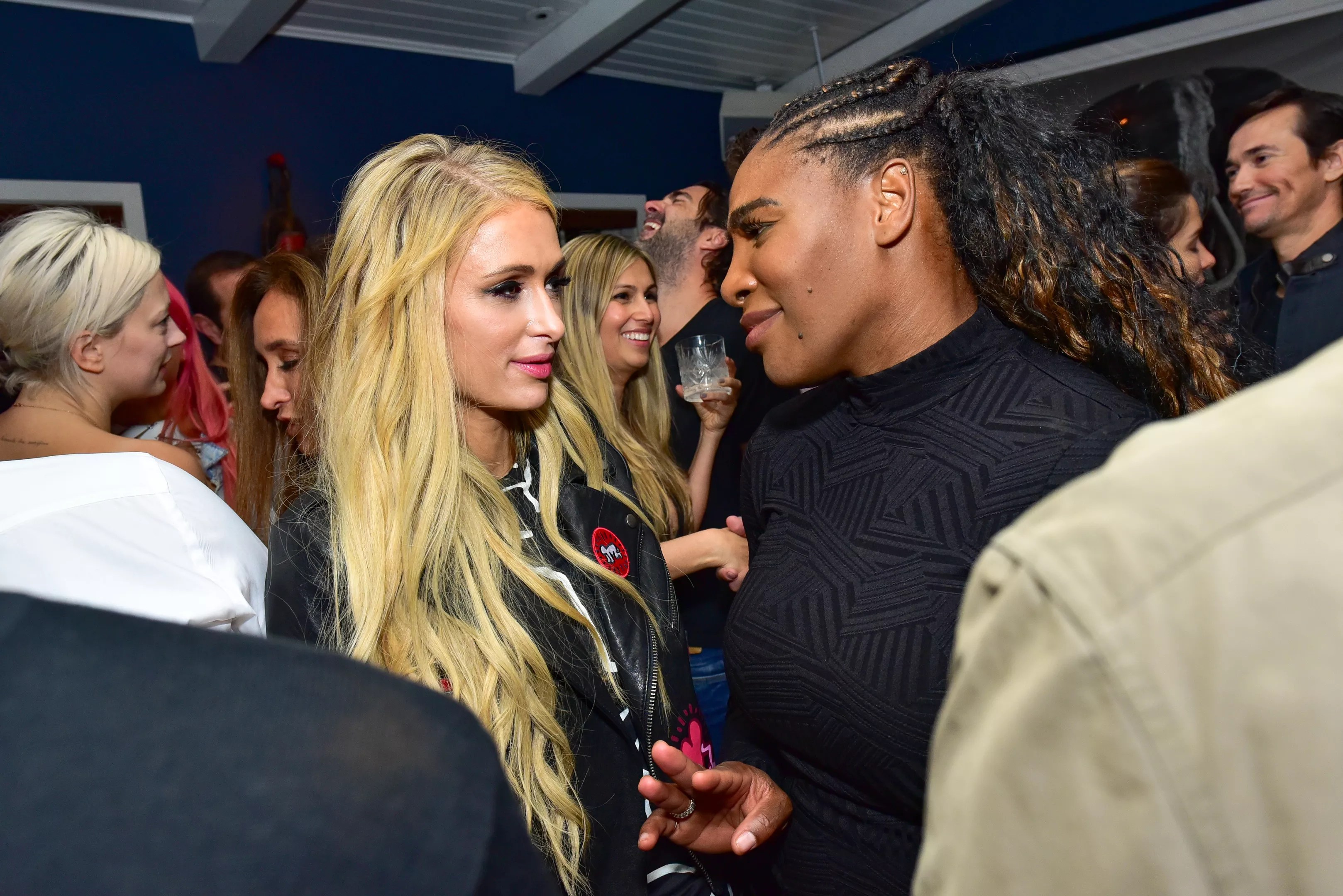 Paris Hilton and Serena Williams at the Casa Tua Karaoke Party with Cocktail Experiences by Beefeater Pink during Art Basel Miami.