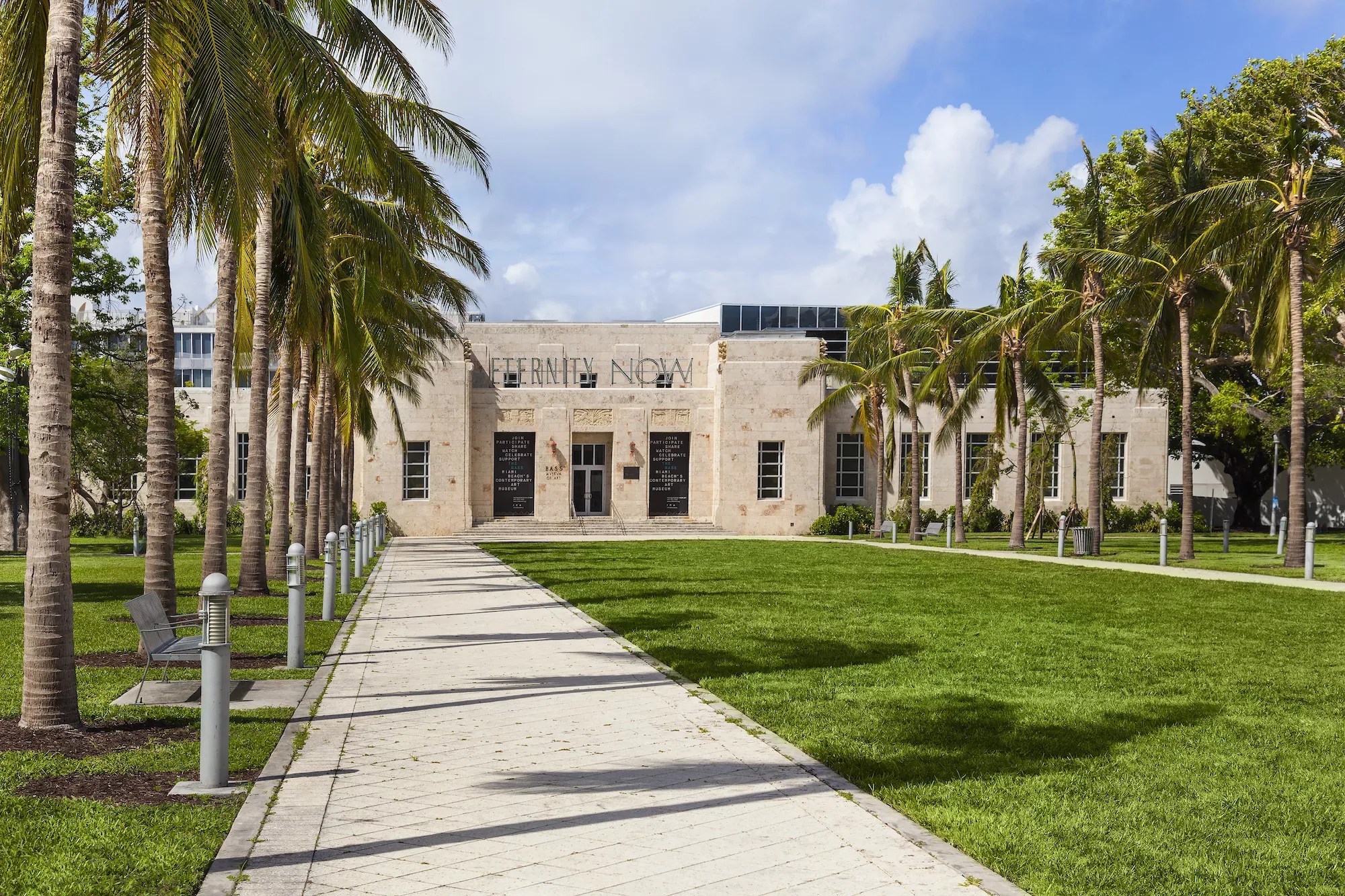 2100 Collins Ave., Miami Beach With its gloriously designed limestone façade infused with coral, the Bass was initially built as the public library and is another one of the more simple examples of art deco. Lacking the neon, bright colors, and zigzag or eyebrow-style design accents seen elsewhere, the Bass does have ornate façade detailing and clear geometry elements that help to classify this building better. Its gorgeous exterior is a perfect example of art deco contextuality, with the rich limestone making a statement before you even step into the building.