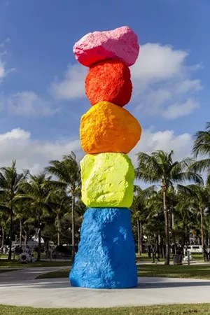 Even if you don’t enjoy eating colorful candy marzipan, it’s hard to argue with viewing monumental art that looks like it. Built in 2016 by the Swiss artist Ugo Rondinone, the 42-foot-tall Miami Mountain consists of five bright boulders that sit atop one another just feet from A1A in Collins Park. The sculpture is like a huge, delicious treat for all of South Beach. Rondinone recently installed seven of these sculptures in the desert outside Las Vegas, but those are planned to be there for only two years, while Miami’s stack of stones is part of the Bass museum’s permanent collection and will sit in place for the long haul. Also, technically, the piece is called a “cairn,” a dandy way of referring to a pile of rocks. Turning a corner and seeing Miami Mountain is still a startling experience. The work, which is held together by an iron spine, immediately causes the viewer to question whether the rocks are real and then walk up and engage. The question of artificiality is one dear to Miami Beach, but like the city, the closer you get to the statue, the more awe-inspiring it becomes. It is joyous to look all the way to the top of the Beach’s mountain, which, of course, is rainbow-hued and right by the sand.