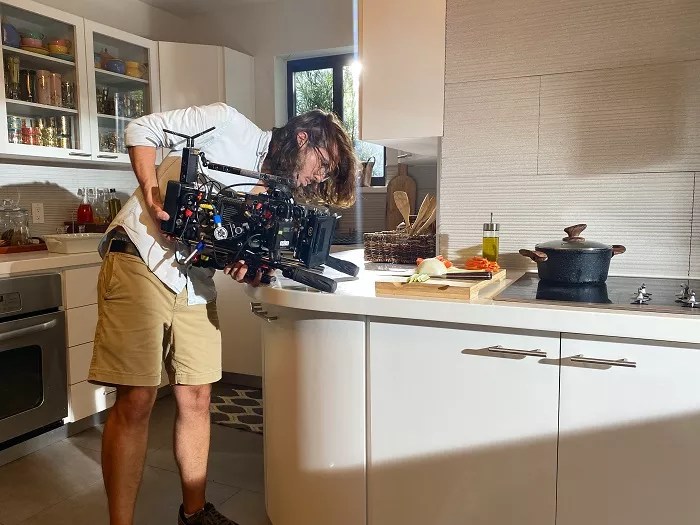 Filmmaker Oscar Ernesto Ortega in the middle of shooting. He and Betancourt had founded a film production company in Cuba before moving it to the United States.