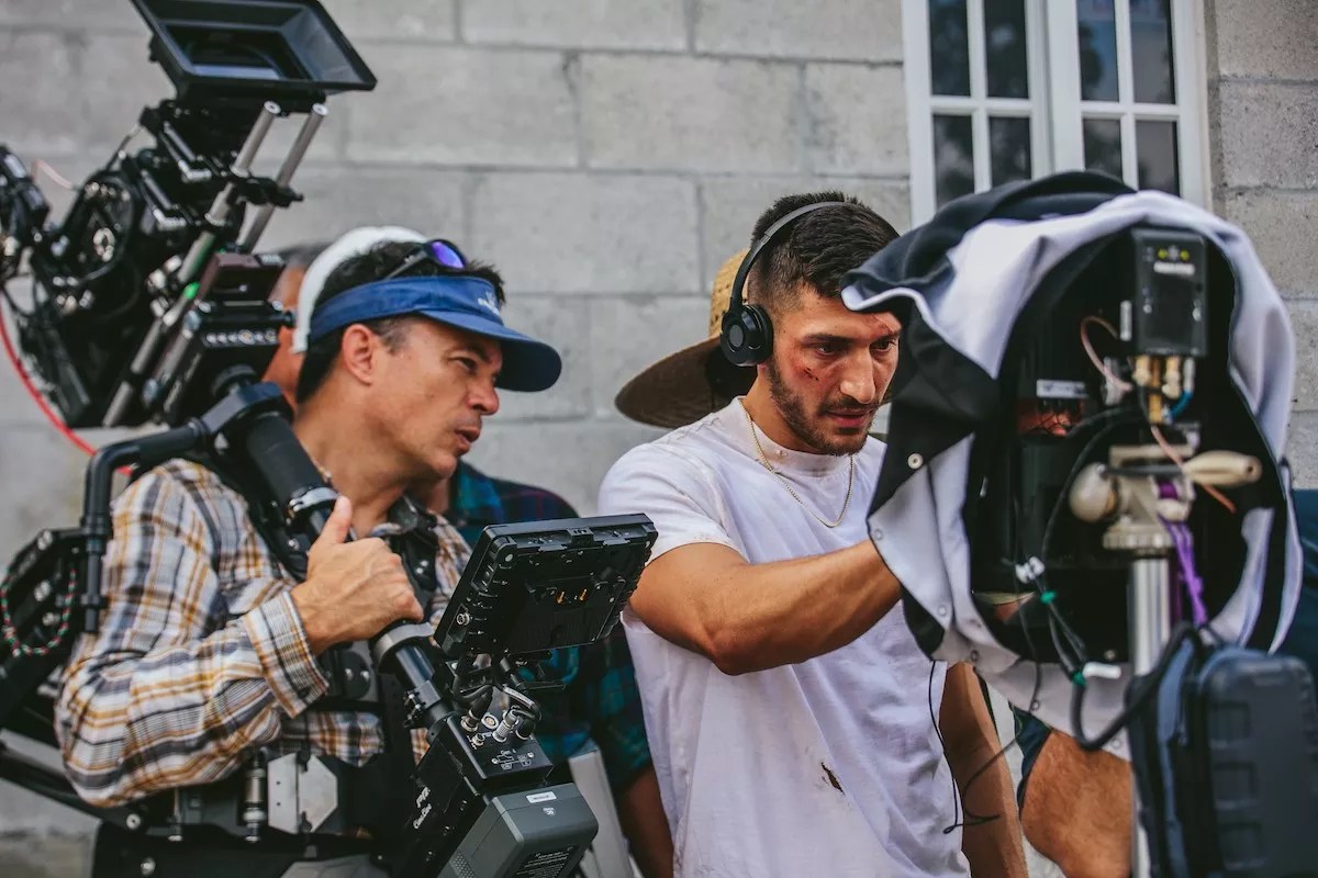 Cassius Corrigan (right) on the set of Hurac