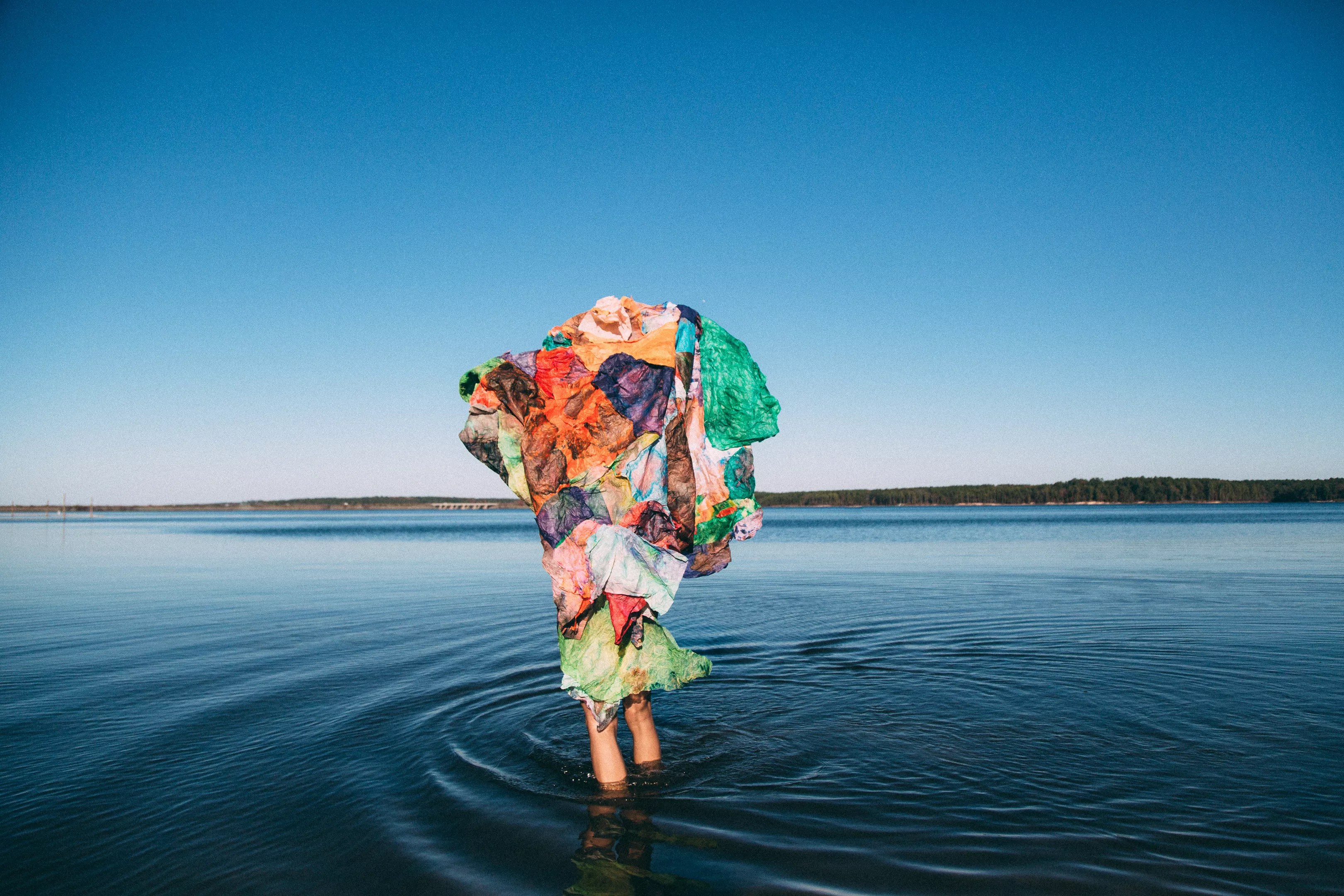 Maya Freelon‘s playful and ephemeral experimentations with dyed tissue paper ask us to question our ideas about strength, fragility, and valuableness. What began as the discovery of a stack of stained, watermarked tissue paper under a leaky pipe at her grandmother’s house in 2005 became the basis for years of artistic exploration. Using a complicated dyeing process, Freelon has created quilts and recycled sculptures from the colorful tissue and even incorporated a pottery wheel into her process. The late poet Maya Angelou, Freelon’s godmother and namesake, described the artist’s work as “visualizing the truth about the vulnerability and power of the human being.”