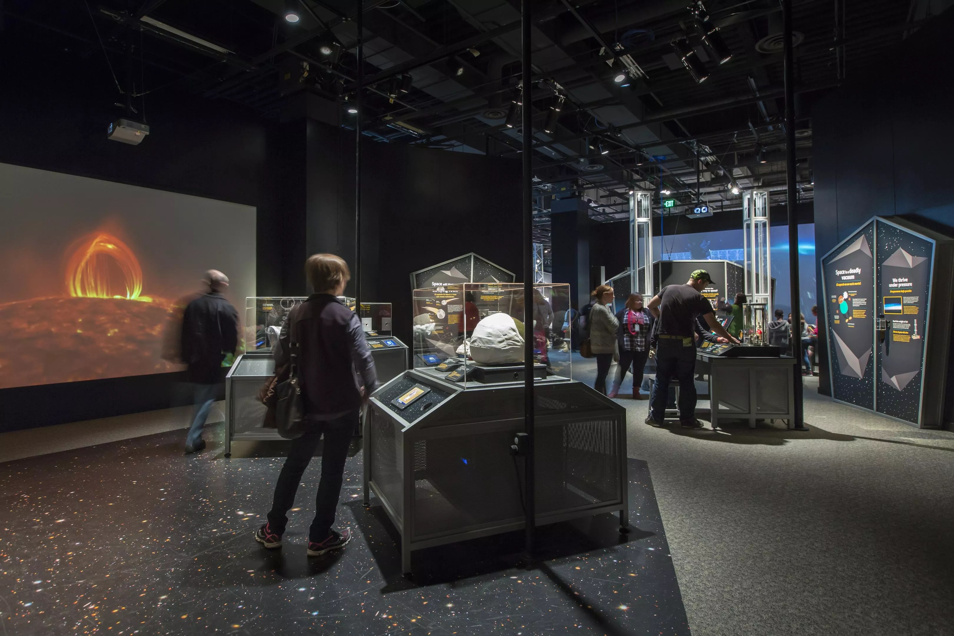 Several of the displays encourage gamefied learning. One station sends a water-powered rocket flying in a glass-walled box – can you figure out the right amount of fuel it takes to reach the top? Another features an Among Us-like power-routing game – can you control the solar power in the space station and make sure life support doesn’t fail?
