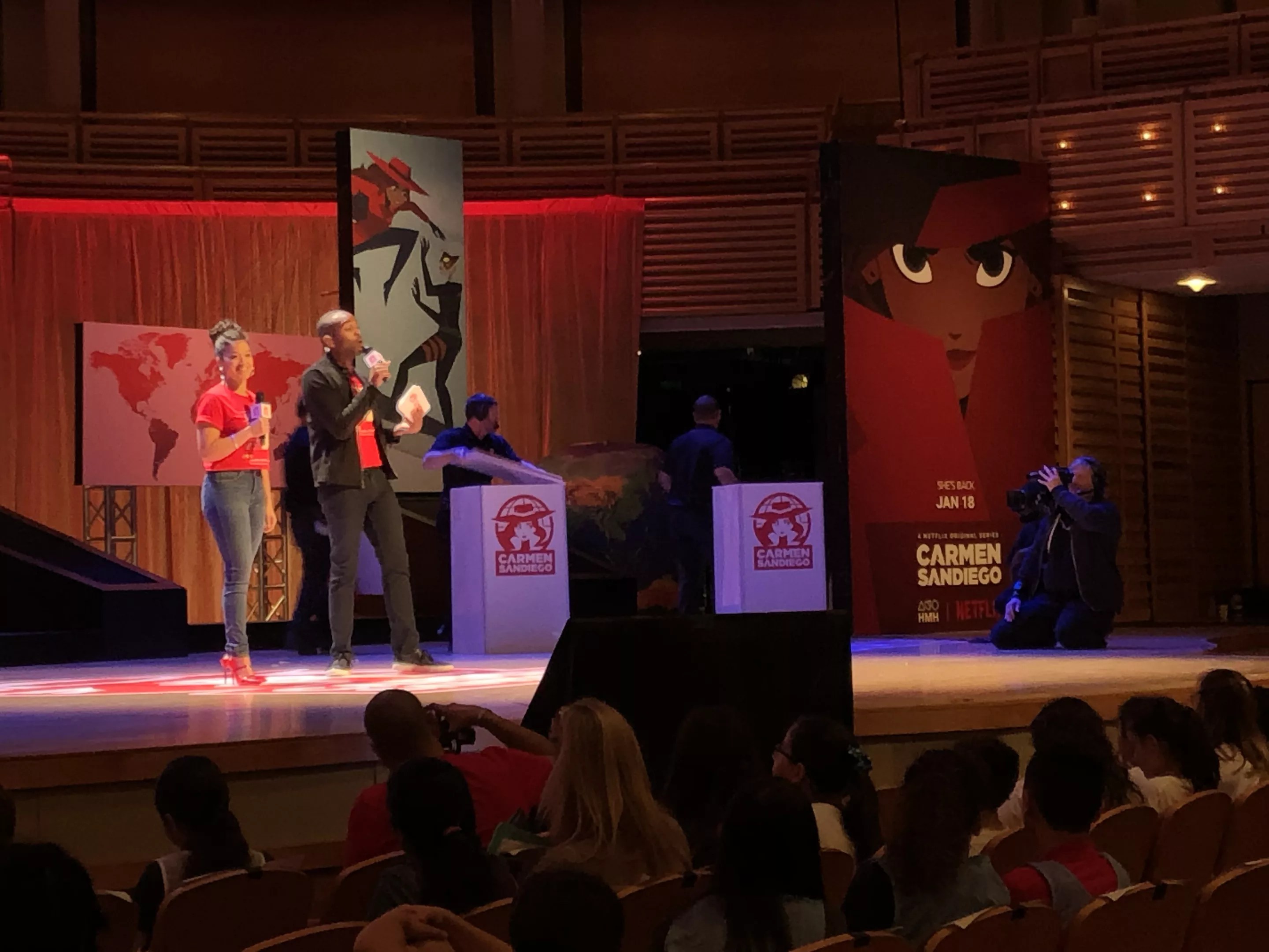 The students were also treated to an exclusive clip from the upcoming series, in which Carmen Sandiego travels to Ecuador, and watched a video message from fellow Carmen Sandiego voice actor Finn Wolfhard of Stranger Things fame.