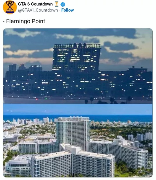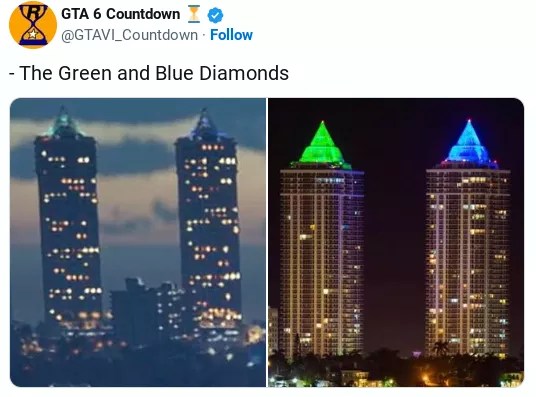 These glimmering jewels of the Miami skyline are hard to miss in real life. Now, a clone of them shines brightly in the simulated world of GTA 6.