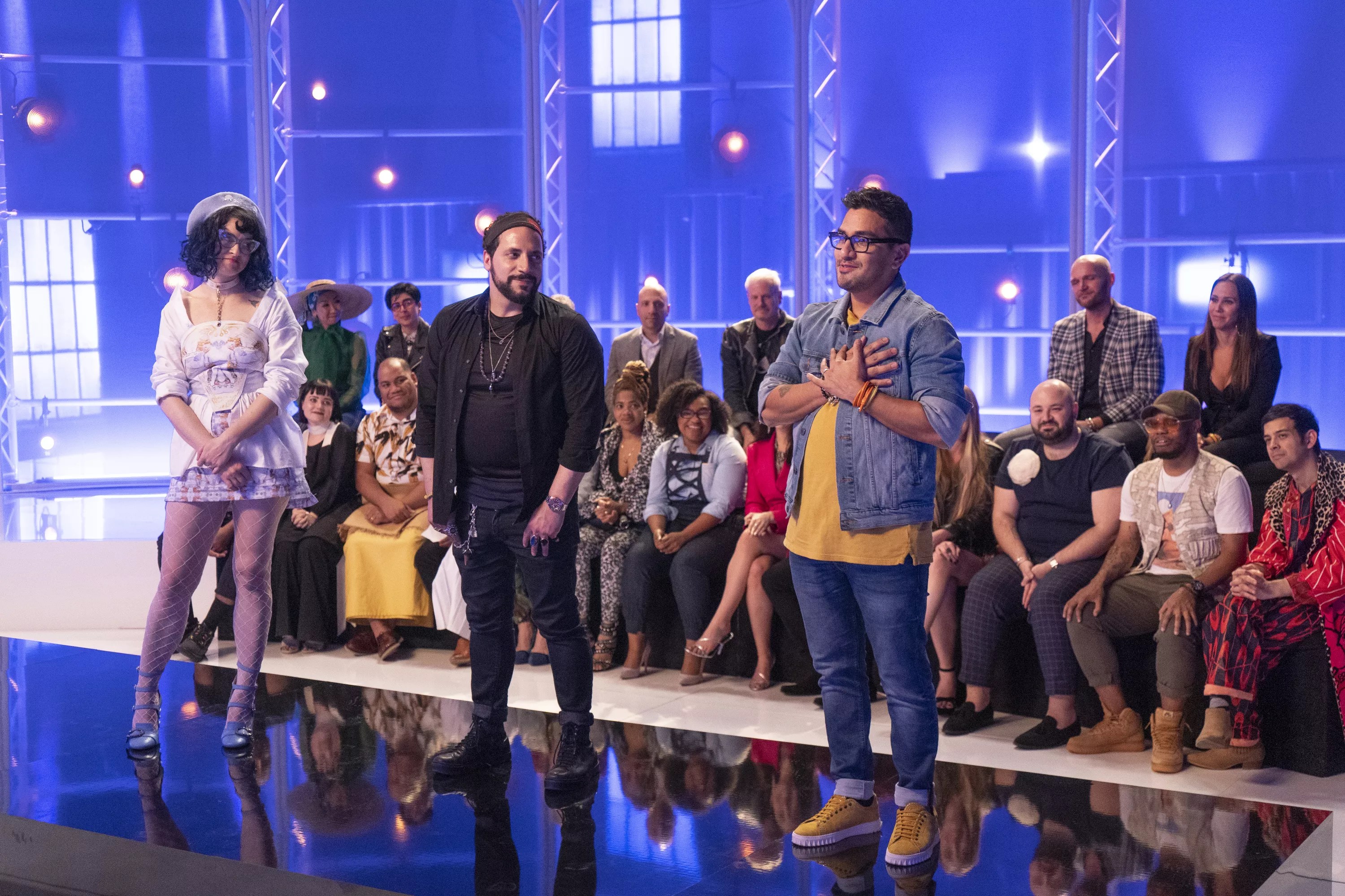 Sebastian Grey (right) with Project Runway finalists Hester Sunshine and Garo Sparo.