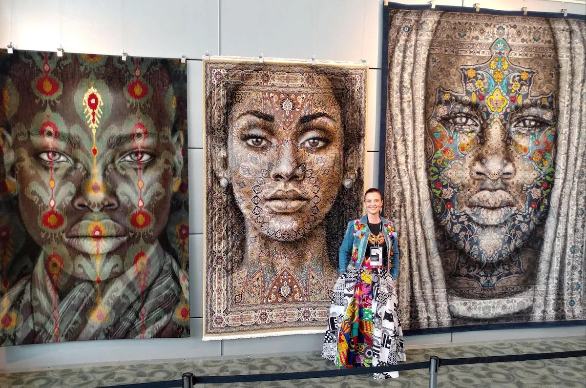 Clement de Grandprey’s work on colorful tapestry has also led her to look toward creating new concepts, such as her “In My Eyes” series. After gathering a collection of people’s eyes, all 100 open eyes are painted on Persian rugs and will participate in this year’s ArtPrize competition in Grand Rapids, Michigan, next month. She’s also working on a book of her painted-eyes series scheduled to be released in September.