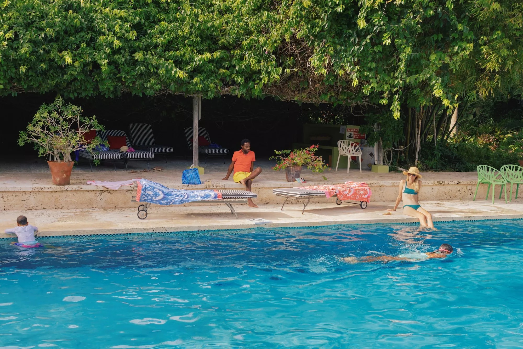Kacey Jeffers, Untitled (Jazzique and his family at the pool), Golden Rock Inn, from the series “Postcards From The Future”