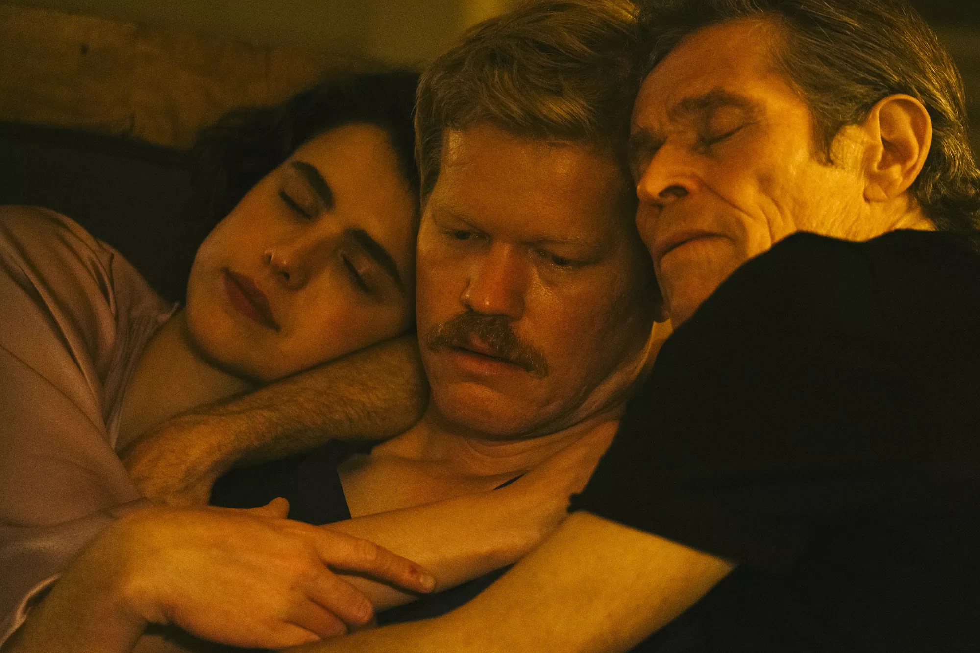 Margaret Qualley, Jesse Plemons, and Willem Dafoe in Kinds of Kindness