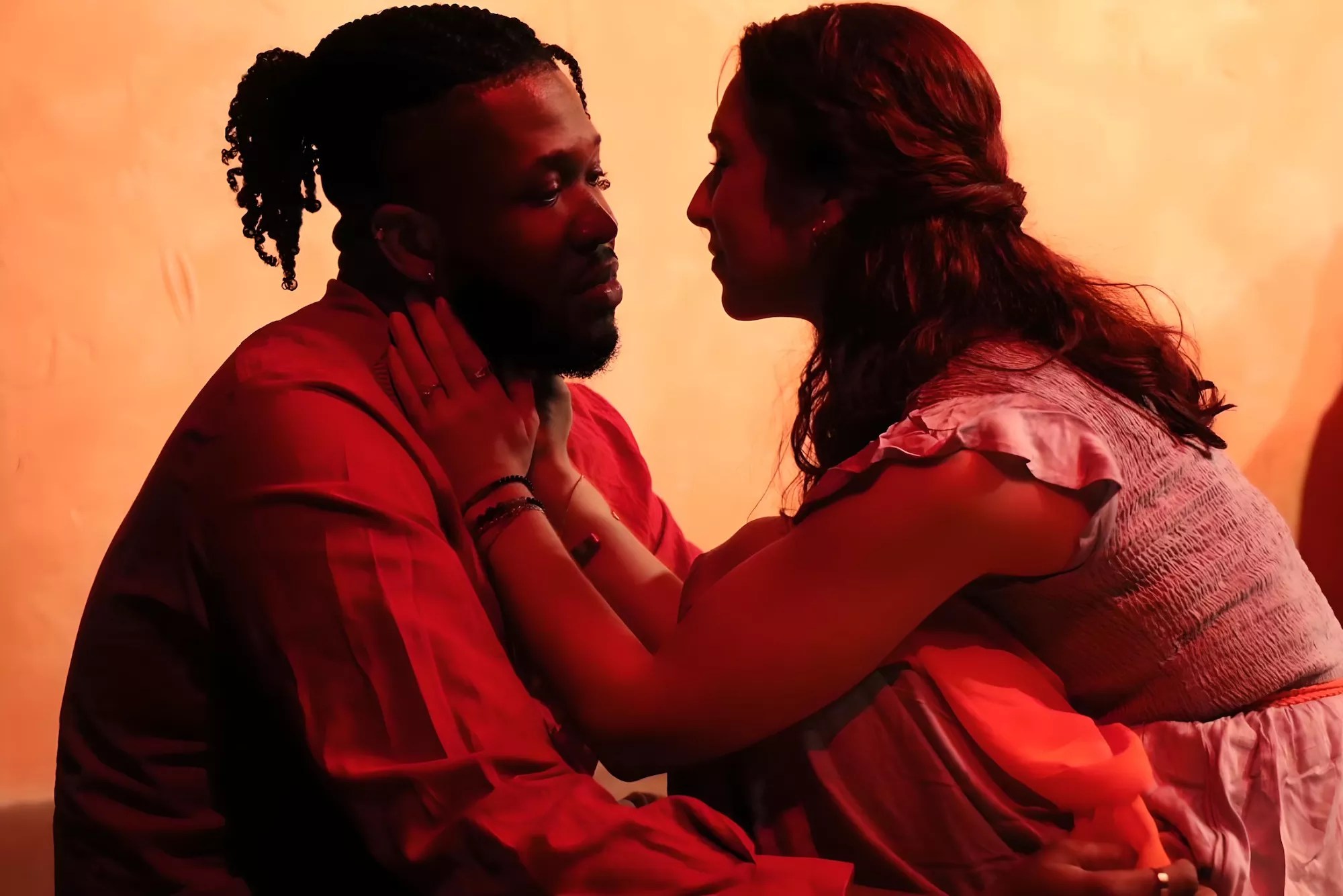 Kyran Wright’s Moses and Lucy Lopez’s Tzipporah share a tender moment in Erin Proctor’s Plague Play.
