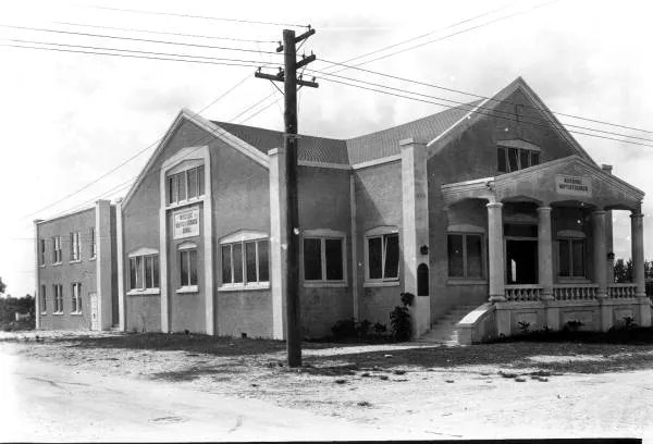 The yellow building on the corner of SW First Street and SW Ninth Avenue was once the Riverside Baptist Church, a place of worship and community gathering for many white Americans in what was once a segregated neighborhood. Built in 1921, the modest structure in 1955 was expanded with a new façade boasting a modified Georgian style and a towering steeple.
