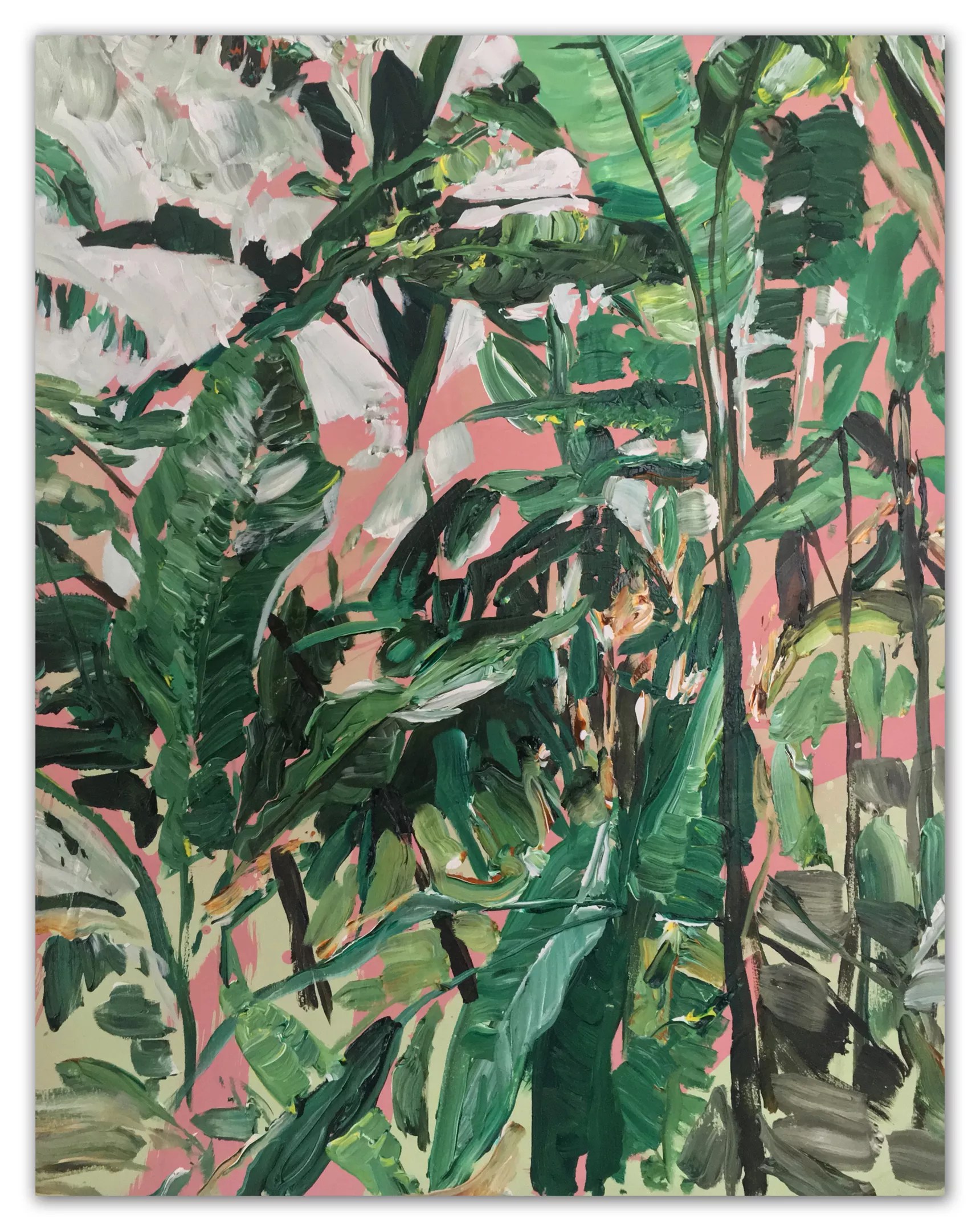 “Fairchild is already a curated garden. It’s like a curated sculpture park in a way. It’s very human. It’s superclose to Biscayne Bay and got wrecked by Hurricane Irma. As waters rise, the first things to go are things made by humans,” he explains. “These paintings I made, you won’t see those landscapes 100 years from now. I was trying to capture, maybe not the natural environment, but more of the human-curated part of it. It’s beautiful. David Fairchild went around the world getting these plants. That was his passion. You can create harmony between different plants, but I was hinting that this is a part of Miami that will be challenged in the future.”