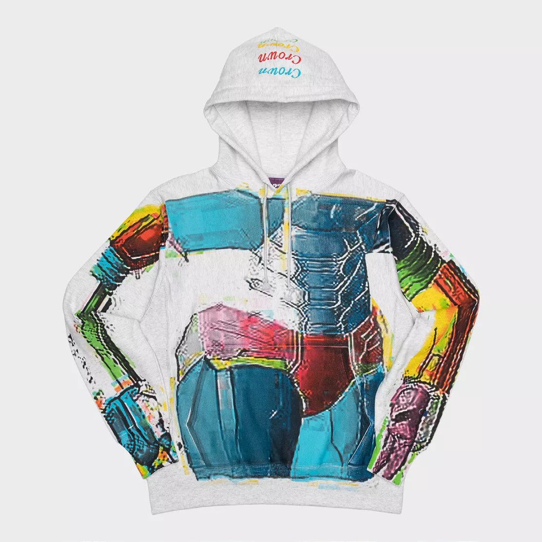 When the hoodie idea was formulated, he decided he wanted a shoot featuring the garment. So Thurman asked two Central Fine employees, Miami artists Betty McGhee and Hunter Osking, to create a short with the prompt: Make it something you’d show if Marvel asked you to direct the next Iron Man. “In some crazy world, I could imagine where Marvel Cinemas would make this kind of version of Iron Man that they’re proposing,” the artist says.