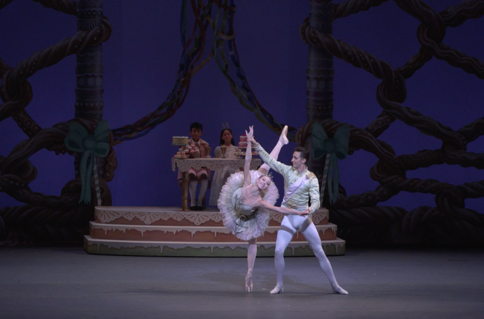 Miami City Ballet principal dancer Dawn Atkins dancing in The Nutcracker, surrounded by young dancers dressed as angels