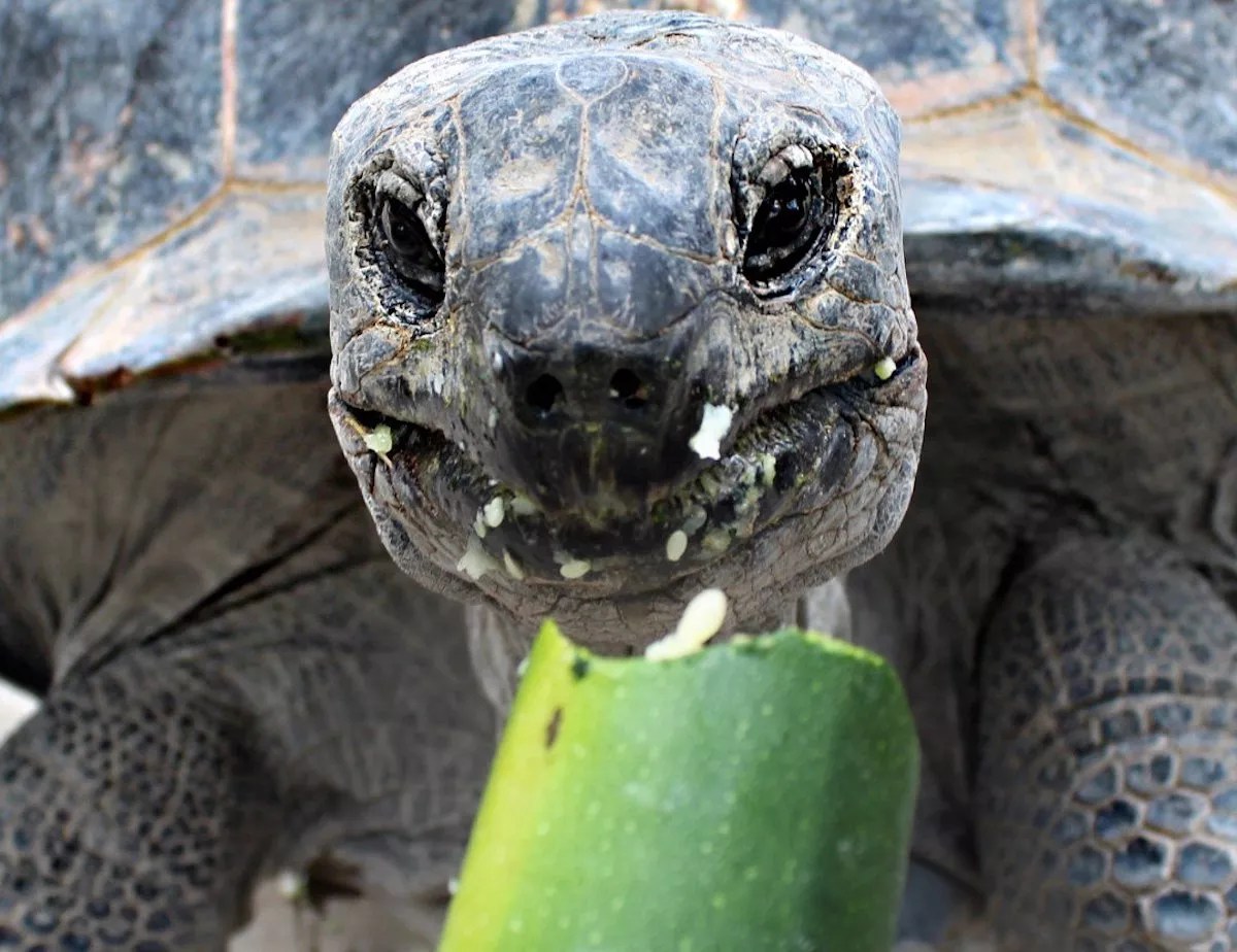 An Aldabra tortoise at Jungle Island.