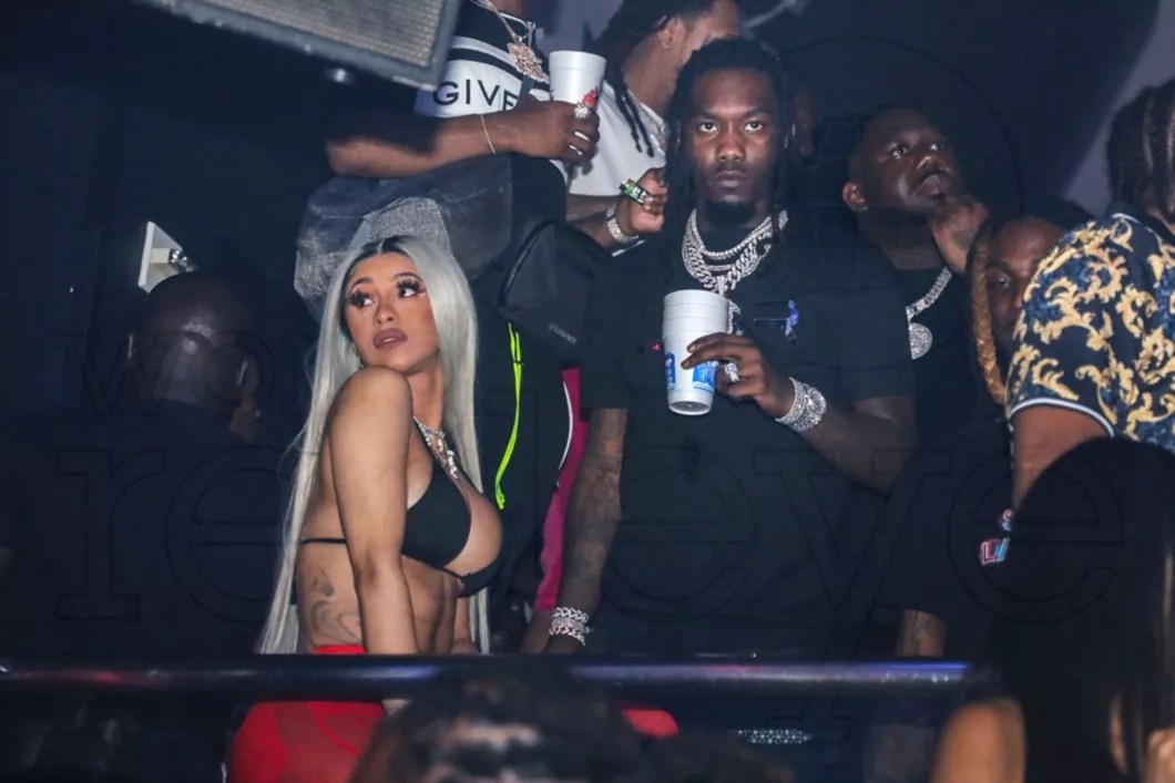Cardi B, Offset and Quavo of Migos, Meek Mill, Blueface, Yo Gotti, Playboi Carti, Waka Flocka, Saweetie, London On Da Track, O.T. Genasis, Mario, Nav, and Zoey Dollaz at Rolling Loud’s Official After Party at LIV on Sunday: Cardi B and husband Offset joined a star-studded cast of characters at LIV.