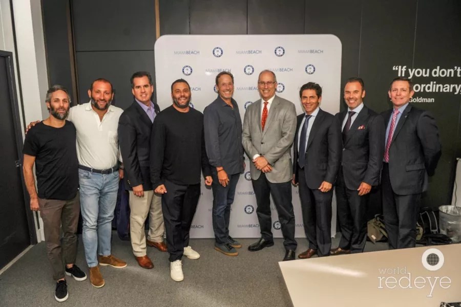 Seth Browarnik (left), Keith Menin, Rolando Aedo, David Grutman, Michael Comras, Dan Gelber, Camilo Miguel Jr., Jay Parker, and Freddie Peterson