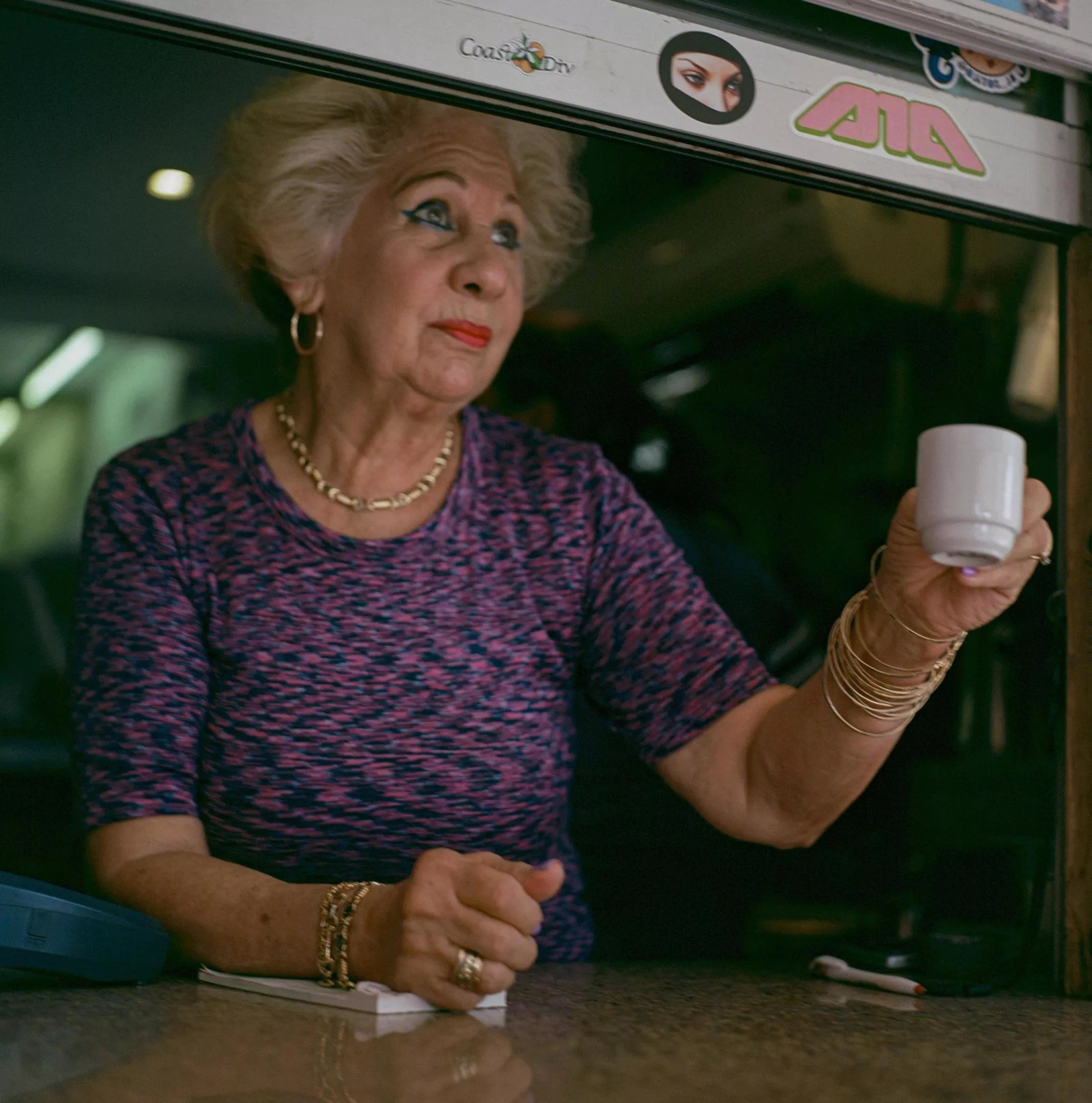 That coffee handoff at Enriqueta’s.