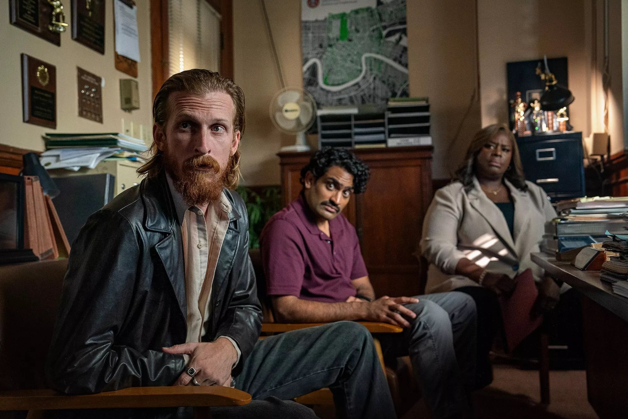 Austin Amelio, Sanjay Rao, and Retta in Hit Man
