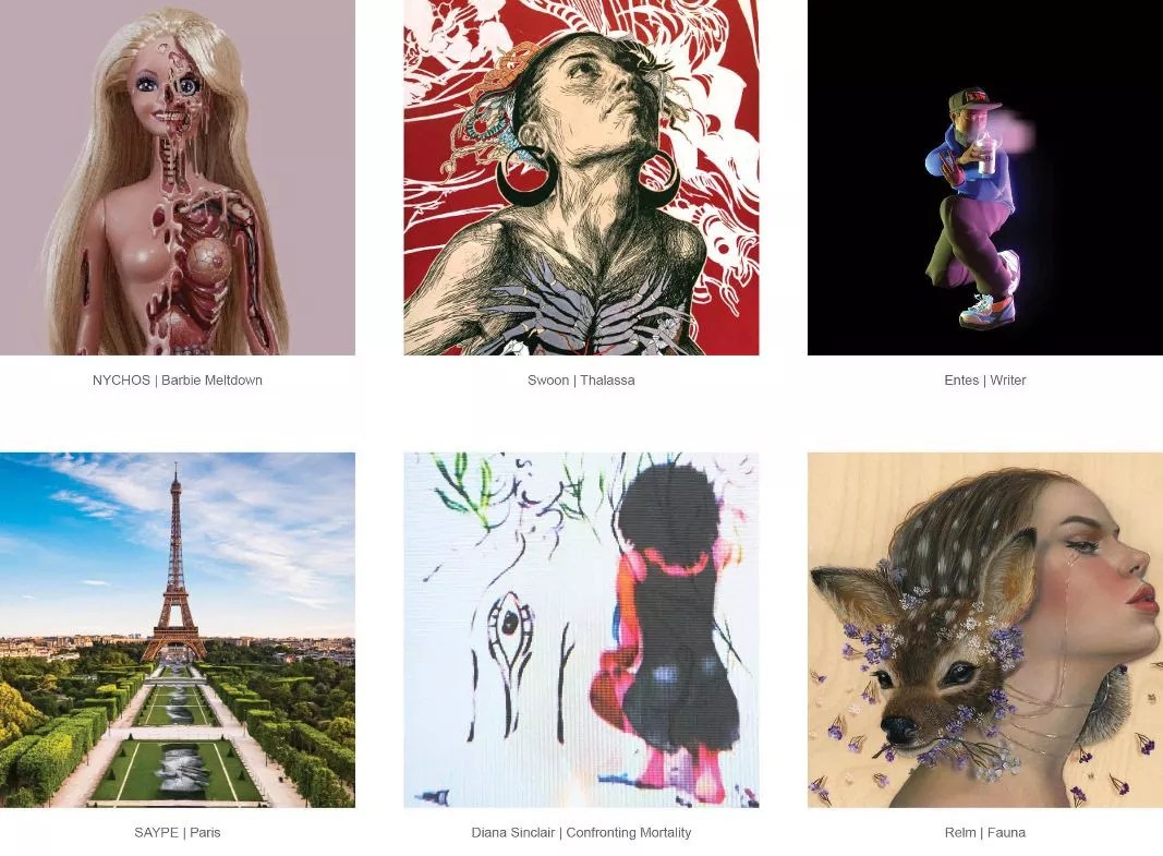 This past May, Cube Art Fair displayed 100 artworks created by artists during lockdown on billboards, kiosks, newsstands, and bus stops across New York City. This December, Cube, which calls itself the “world’s largest public art fair,” will host its “NFT edition” and physically showcase NFT-only works by internationally known artists, some of whom have had their physical artworks featured at Art Basel Miami Beach and the Venice Biennale. Depictions of the NFT artworks will appear on 50 billboards across Miami, but the main attraction will be a 400-foot-tall projection of a mural onto the façade of the InterContinental Hotel downtown. A QR code will accompany the public works and direct viewers to an online platform to purchase as an NFT.