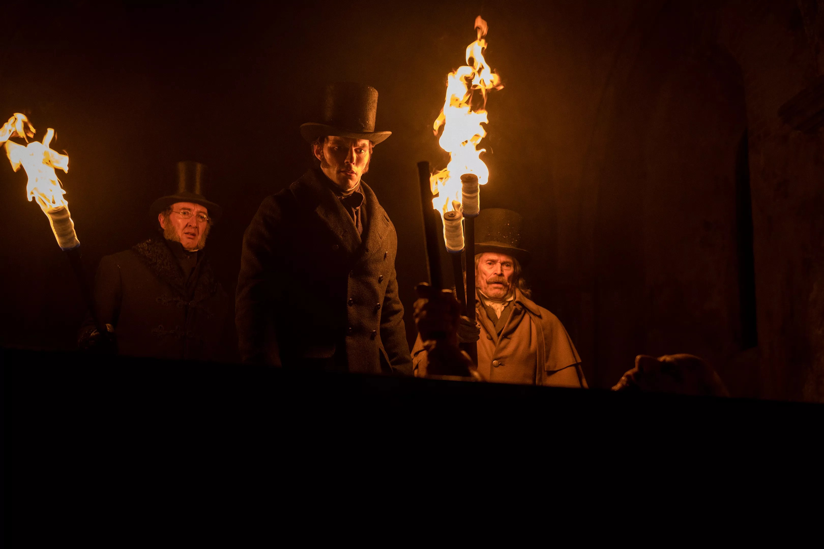 Ralph Ineson (left), Nicolas Hoult, and Willem Dafoe in Nosferatu