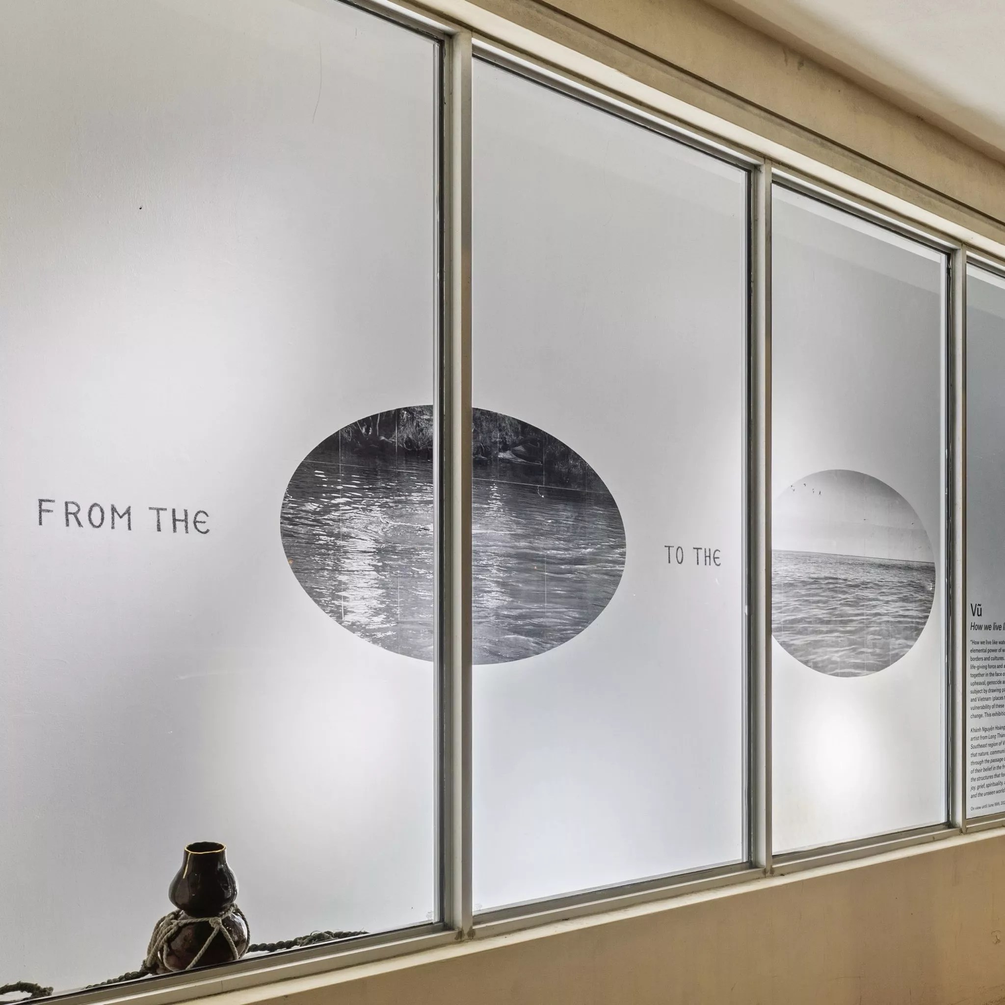 “VÅ© is a child of refugees who were forcefully displaced from their ancestral homeland due to American intervention in the region. The Vietnam War triggered protests that mirror today’s protests against the war on Gaza. Miami, which VÅ© also considers home, was represented in the removed artwork by a photograph of the Atlantic Ocean. VÅ©’s artwork references water as a site of struggle for all oppressed peoples. The work invokes the phrase ‘from the river to the sea’ as a reminder to viewers that water is a precious, borderless resource that connects us all.”