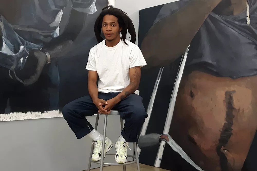 “My goal as an artist is to continue doing what I’m doing now: expressing my truth,” he says. He rests his head on the inside of his left palm. “I just hope to be able to express myself as much as I can and continue to become a better painter.”