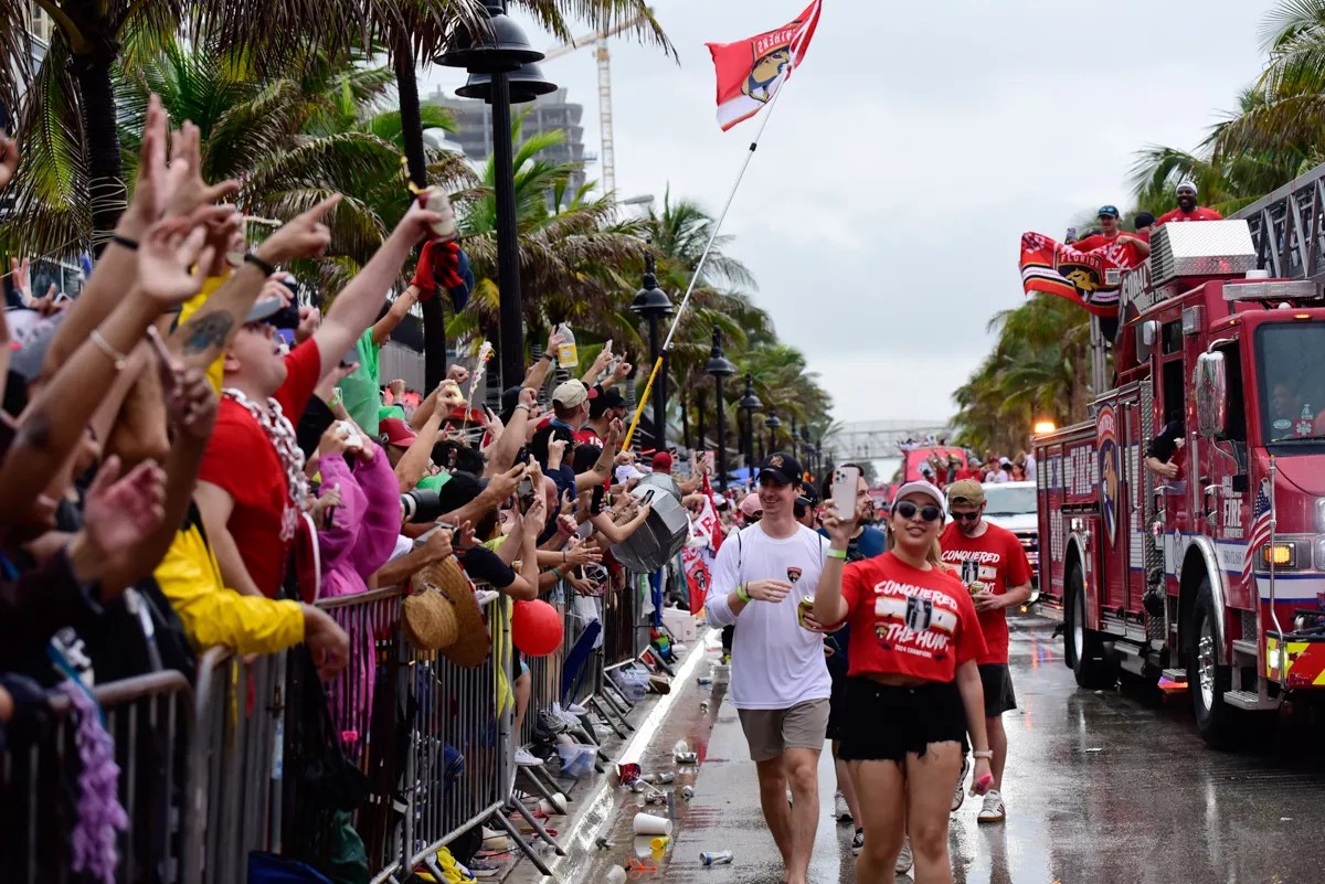 Not even the rainy weather could keep fans away from Fort Lauderdale Beach to help the National Hockey League’s Florida Panthers celebrate their first-ever Stanley Cup championship.