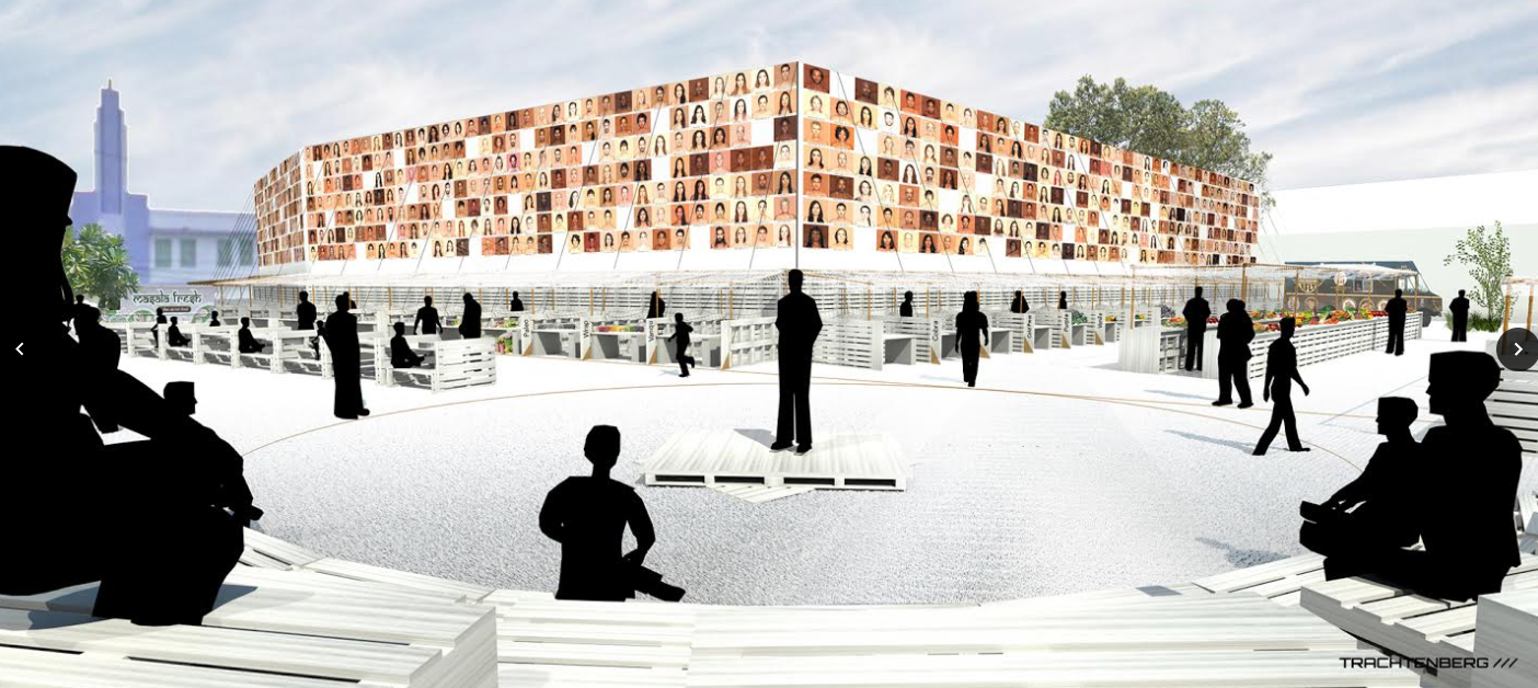 Humanae consists of 794 diverse “faces” presented on a 25-by-310-foot banner. The piece is a mosaic showing people of diverse shapes, sizes, colors, ages, and sexes, with random spaces purposely left vacant so that guests can place themselves inside the art and contemplate what it means to be a part of humanity.