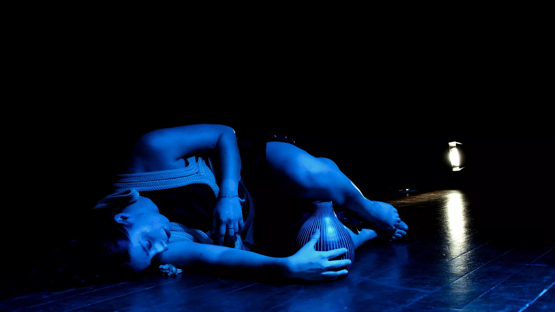 Performer Briana Mendez in Roxana Barba’s “Apuntes Americanos-Kanay” at Alianza Cultural Francesa de Miraflores in Lima