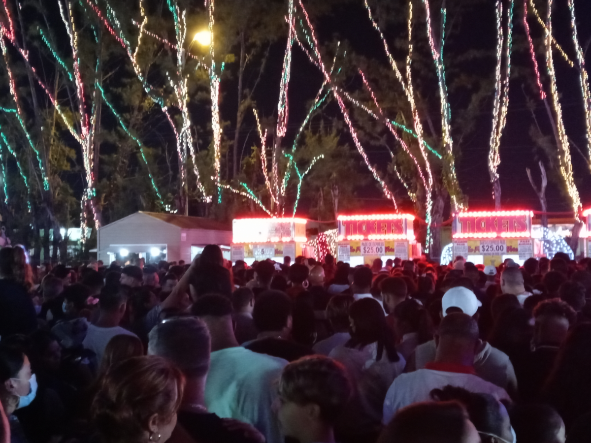 “Vámonos,” Cuevas says, prompting groans and questions from the young ones who were willing to wait longer to see the games, food, shows, and nativities. “The line is really bad.”