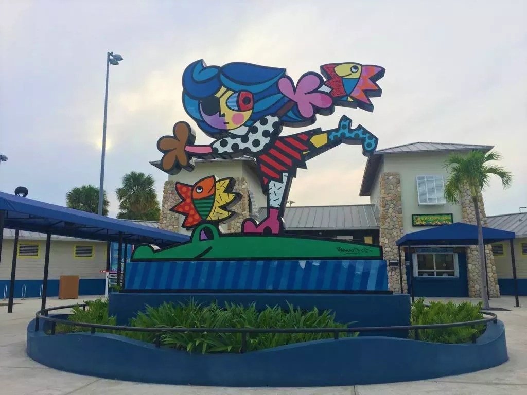 The entrance to Grapeland Water Park features a Romero Britto sculpture.