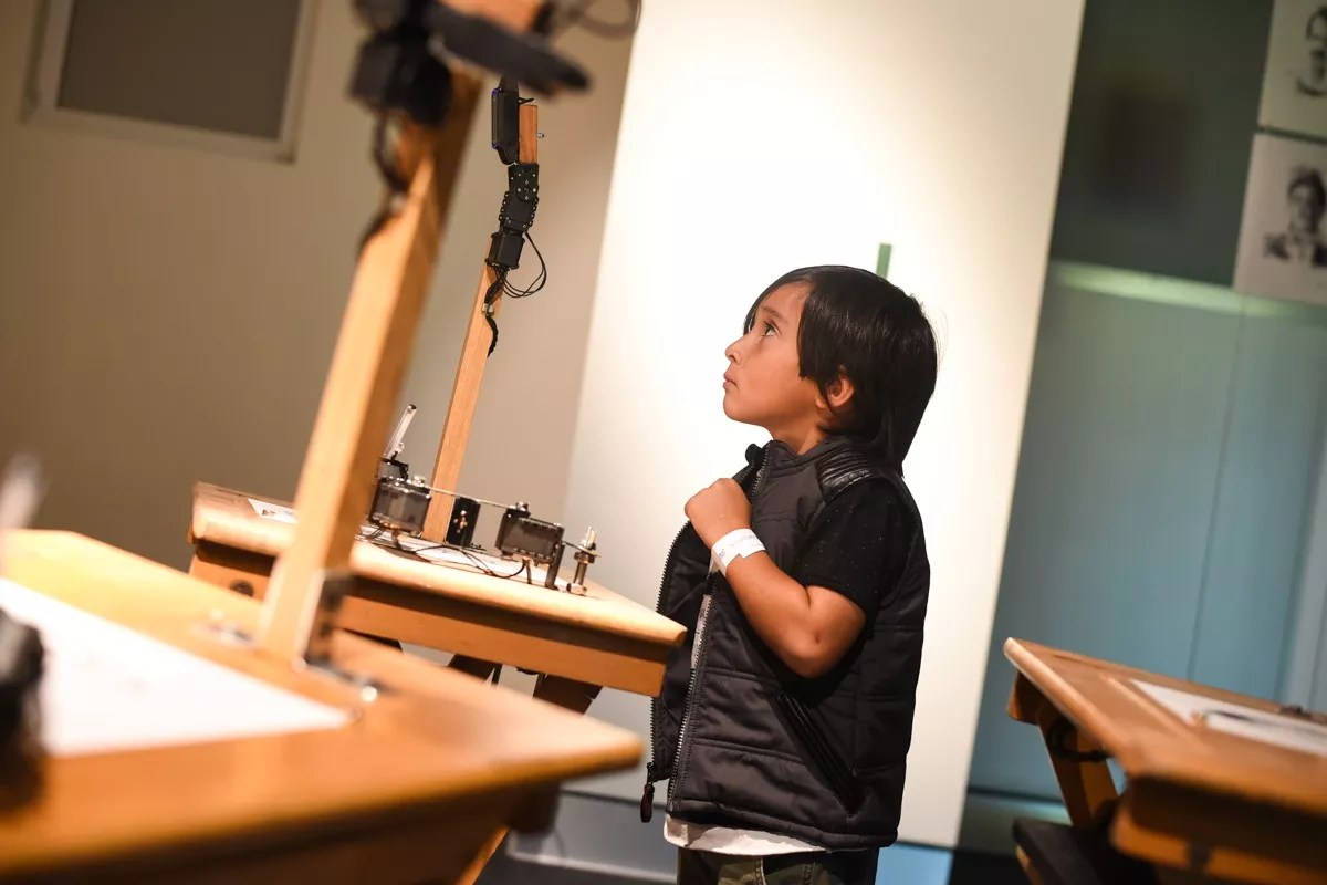 It seems like just yesterday when you were making paper planes in school, propelling them across classrooms with a flick of your wrists. Well, now it’s your children’s turn – but on a grander scale. As part of the “Feathers to the Stars” exhibit, kids learn the principles of aerodynamics by using a launcher to thrust their paper planes into the air. Which wing design will take their aircraft farthest?