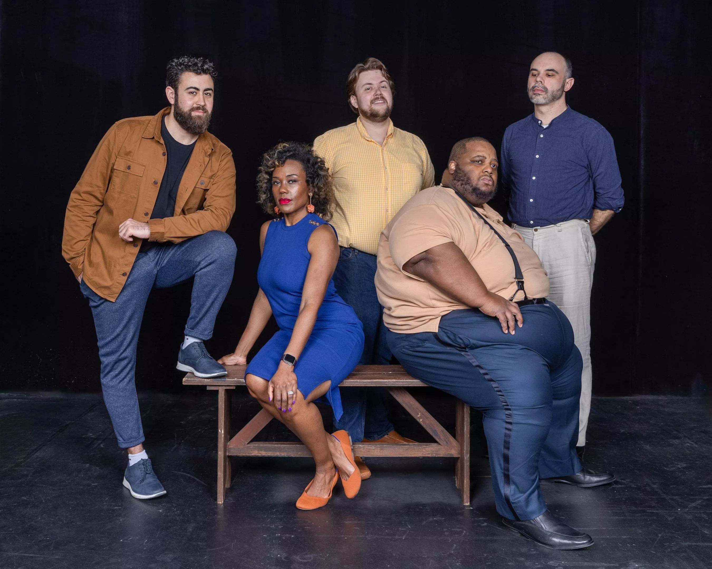 The cast of Florida Grand Opera’s I Pagliacci: Kearstin Piper Brown (Nedda), Limmie Pulliam (Canio), Eleomar Cuello (Silvio), Joseph McBrayer (Beppe), and Robert Mellon (Tonio)