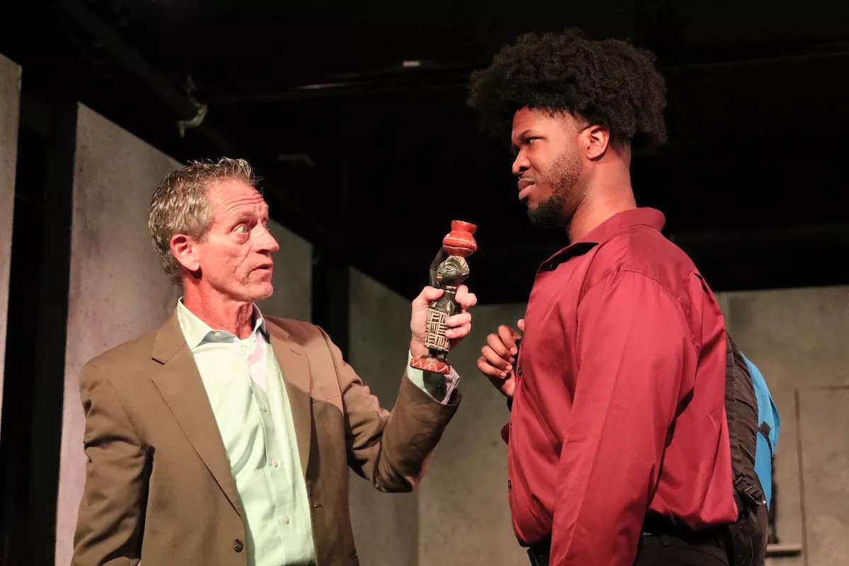 Black Sheep explores insidious racism – the micro- and macroaggressions – among those who insist they are absolutely not racist. Just one example: Nelson asks Carl where in Africa his “people” are from. Then he looks at one of the many primitive figures now in the guest house. “Why don’t African artists carve what they see?” Nelson asks. Carl’s response? “Maybe that is what they see.”