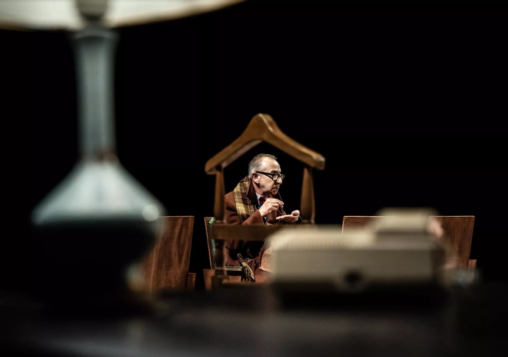 As proof of the cinematographic element used in the stage performance, he cites the use of actors with their backs to the public. “It’s a rule to say in theater: you can’t turn your back,” he says. “I review my staging and realize that I use the back as a narrative resource. I want to narrate from the back, and here I do it too. Having the viewers in headphones gives me certain freedom; I can compose visual frames that are not subject to sound, so the sound is a very cinematic narrative component in the story.”