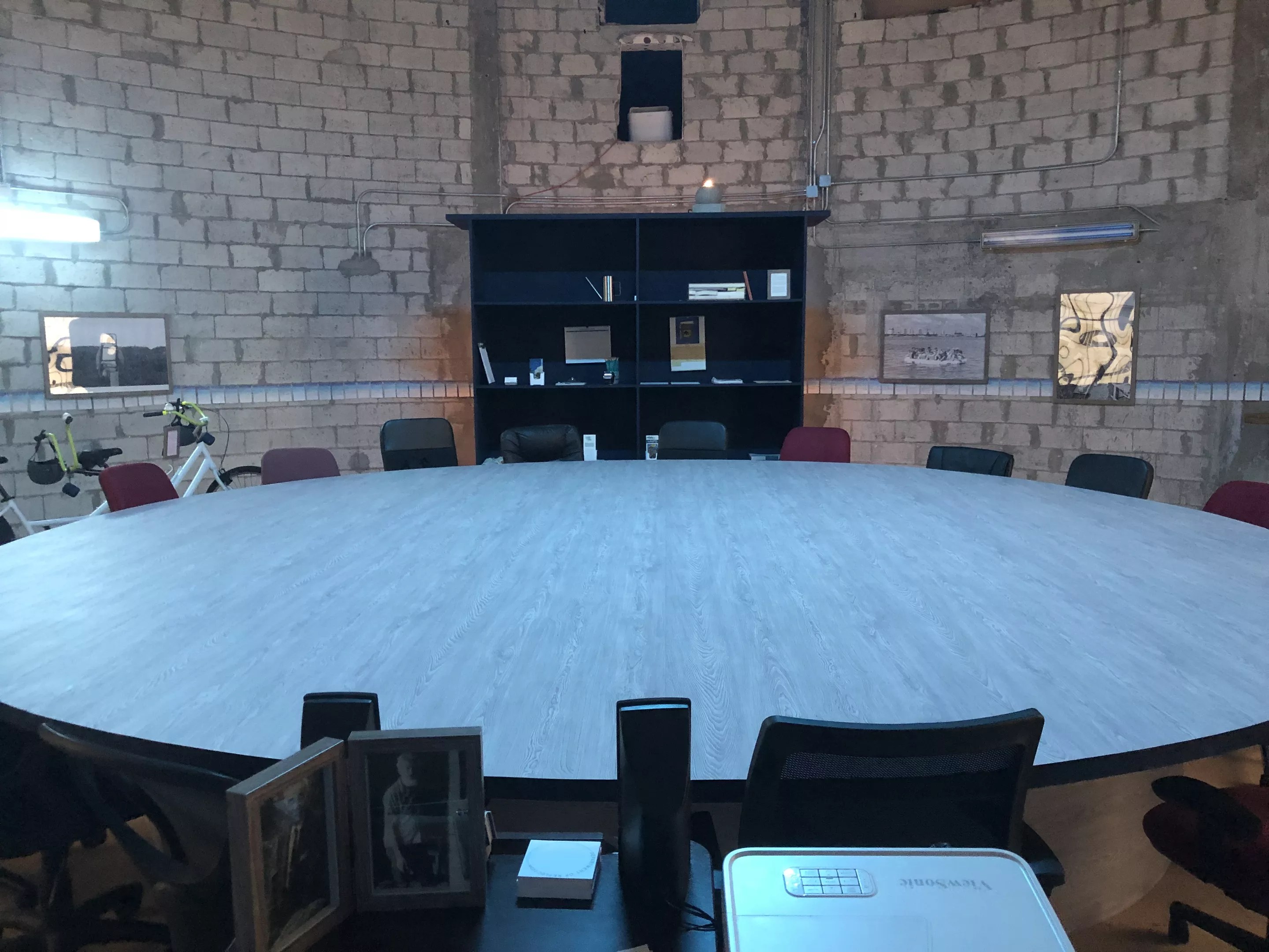 Soto playfully draws inspiration from city government while parodying it a bit too. The artist purposely built the circular table so large it would be difficult to conduct a productive meeting there because people sitting across from one an other would be too far away. “I really wanted to allude to the responsibility to community that is civic engagement,” Soto says, “but also make it too big, to where you have to go back inward and really talk to the person next to you or just talk to yourself.”