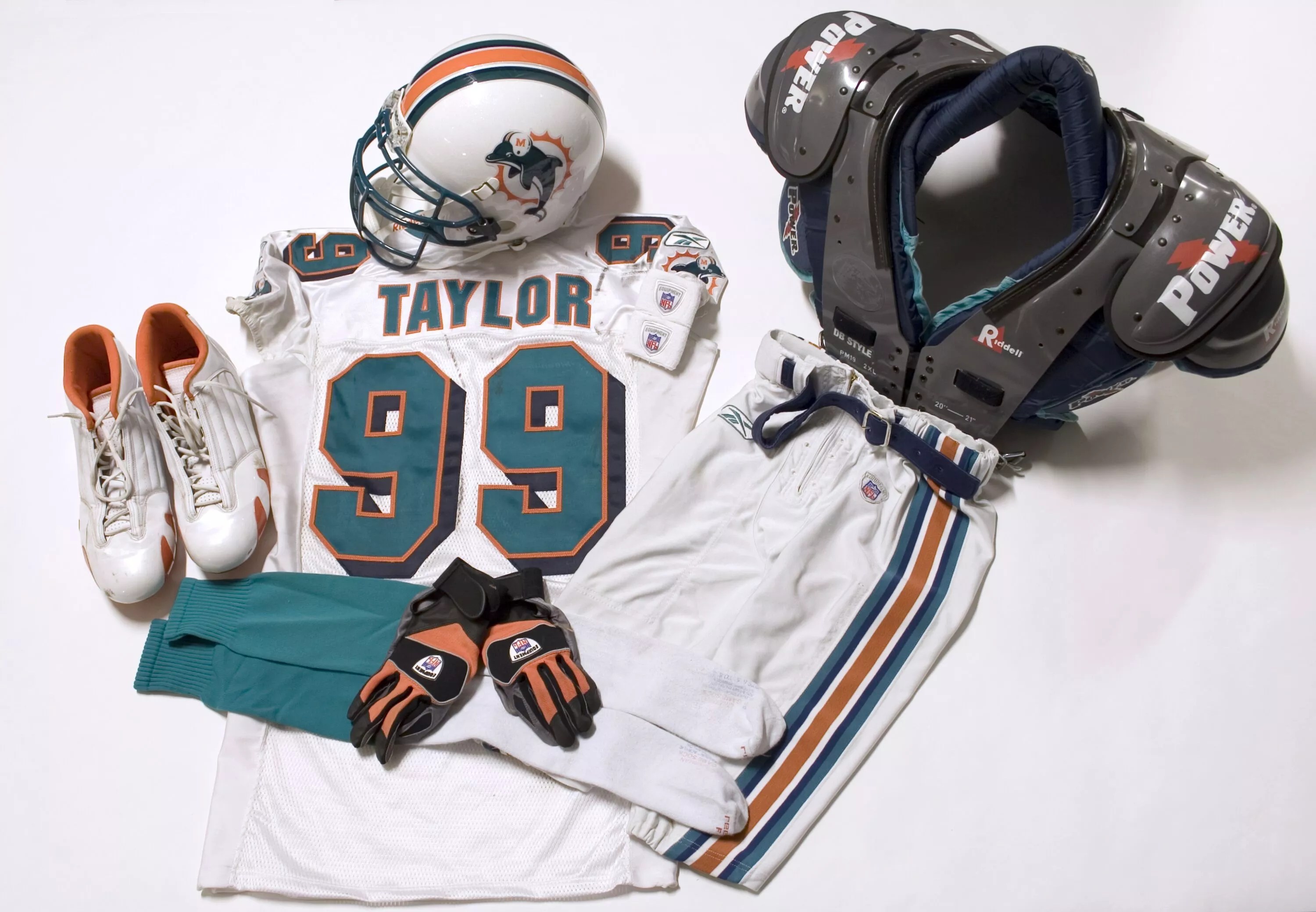 The exhibit offers a “Hometown Heroes” section that includes Jason Taylor memorabilia from his NFL Defensive Player of the Year season.