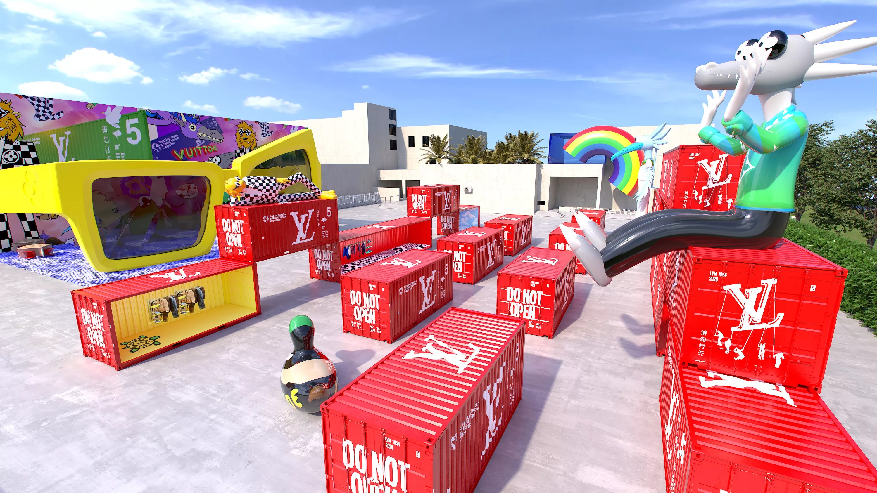“Zoooom with friends” first appeared during the 2020 Digital Fashion Week in Paris, with joyfully animated escapades throughout the city. Far from the usual foray into fashion week, the show only concluded when the characters packed their Louis Vuitton trunks and climbed aboard shipping containers headed East. Next stops included Shanghai and Tokyo as gigantic balloons, but they’re now embarking on a global adventure to celebrate the fashion house’s spirit of travel. Next stop: Miami.