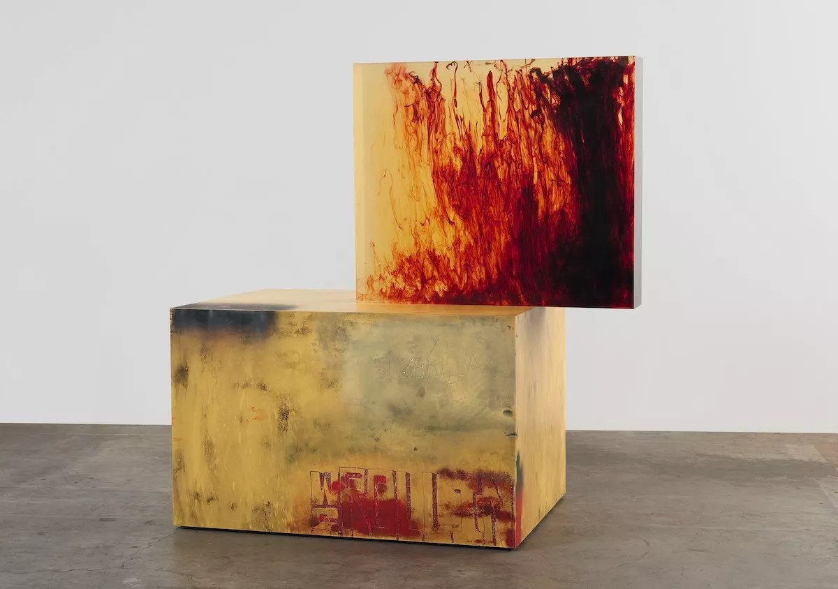 Sterling Ruby’s Acts/WS Rollin (2011), clear urethane block, dye, wood, spray paint, and Formica.