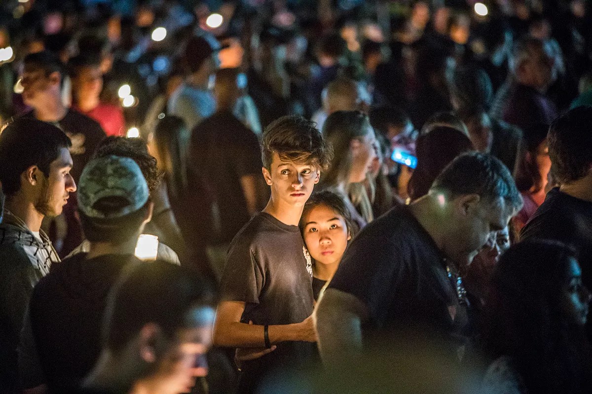 Vigil for the victims of the Marjory Stoneman Douglas High School shooting, held February 15 at Pine Trails Park in Parkland, Florida.