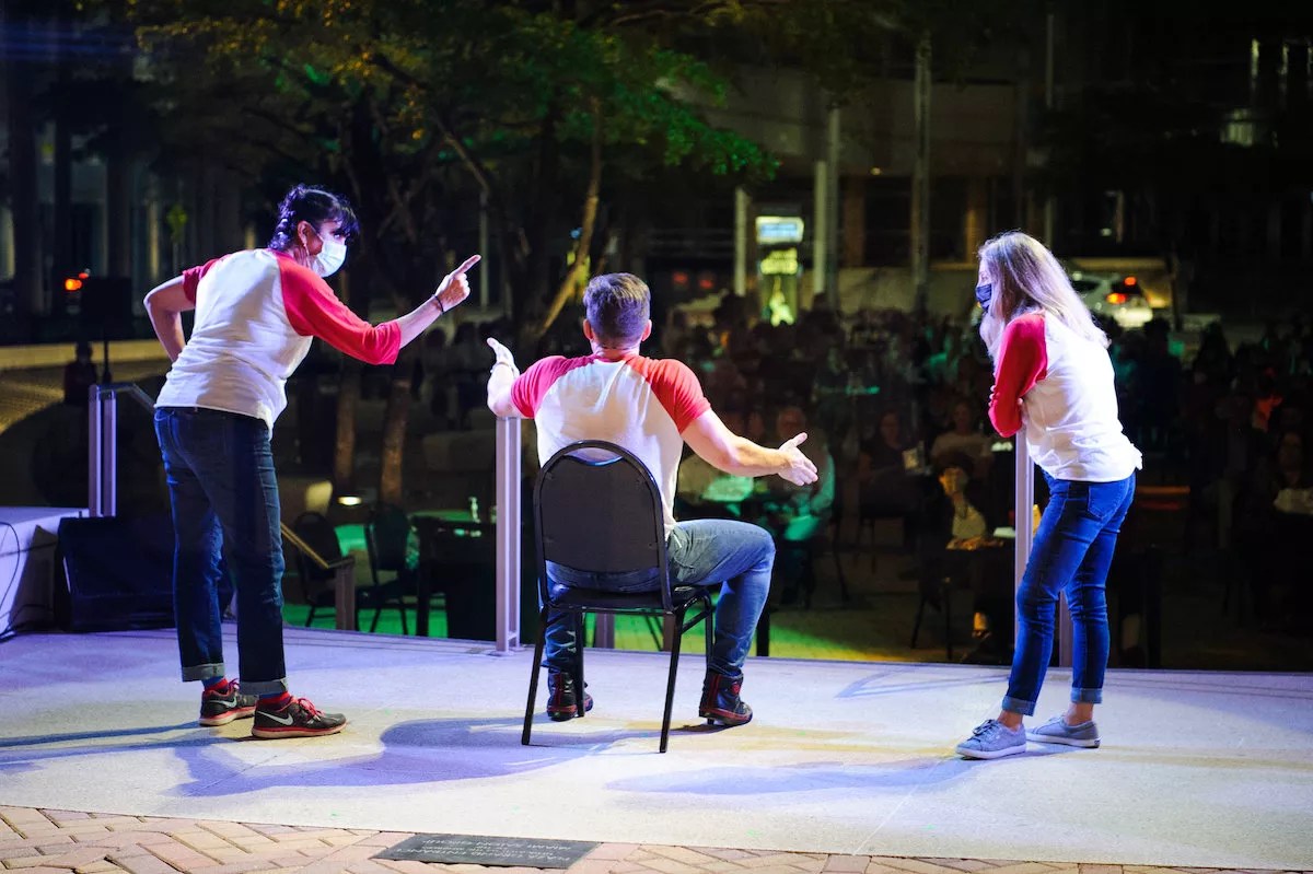 Hence the presence of the fast-paced improv show, Zoetic Schmoetic, on the outdoor Thomson Plaza at Miami’s Adrienne Arsht Center for the Performing Arts over the weekend.