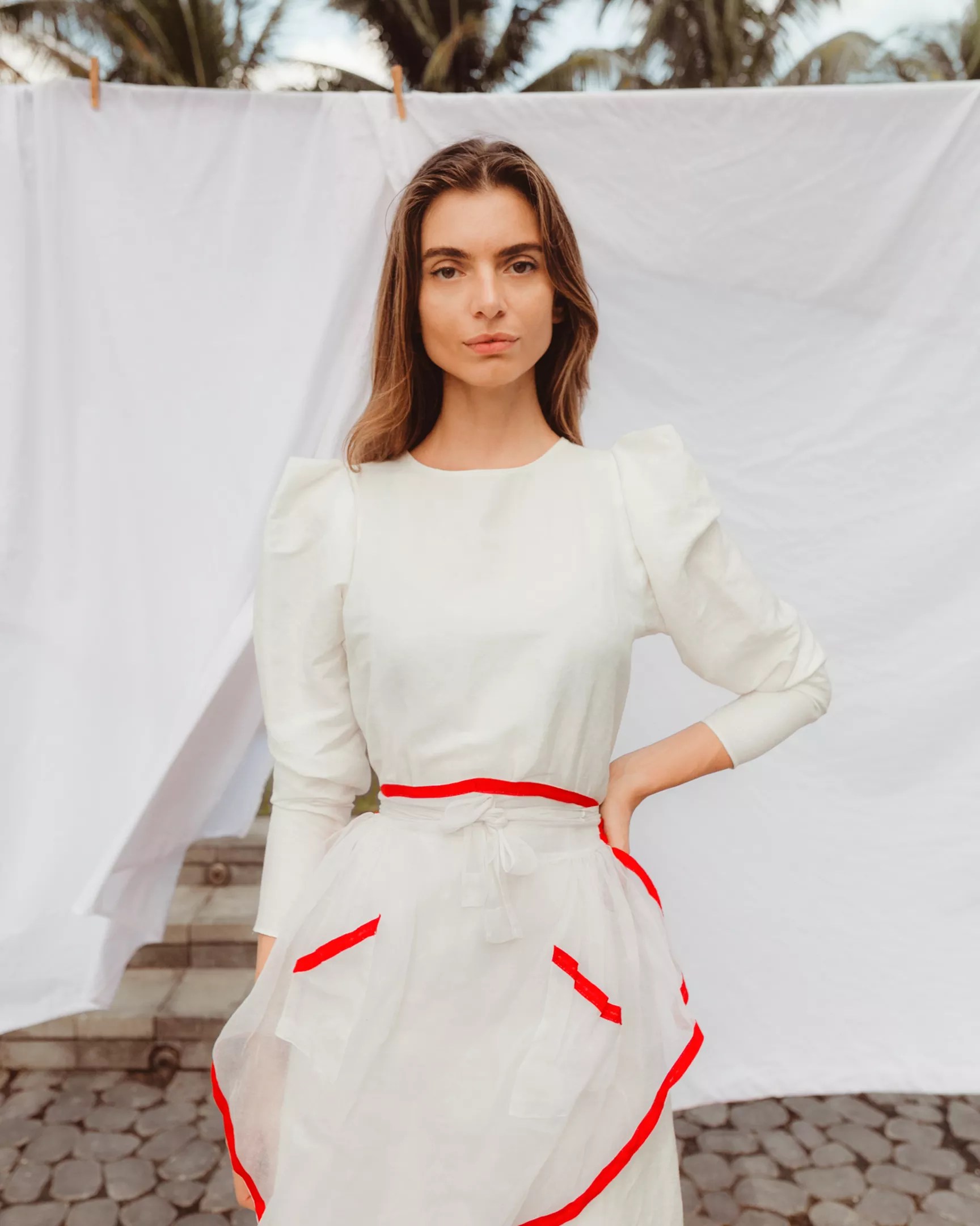 “The beauty of the domestic work for me is connected to hardship. I grew up in the early ’90s in Russia, and I remember when my family didn’t have a washing machine, how tedious and hard doing laundry was, and that it would last all day,” said Juskowski. “But I also remember the bliss of helping, seeing the sheets and clothes hanging, and the smell of detergent, the beauty of all of it. My installation is designed to bring people back to that feeling of bliss but to also educate them about the hardships attached to the issue.”