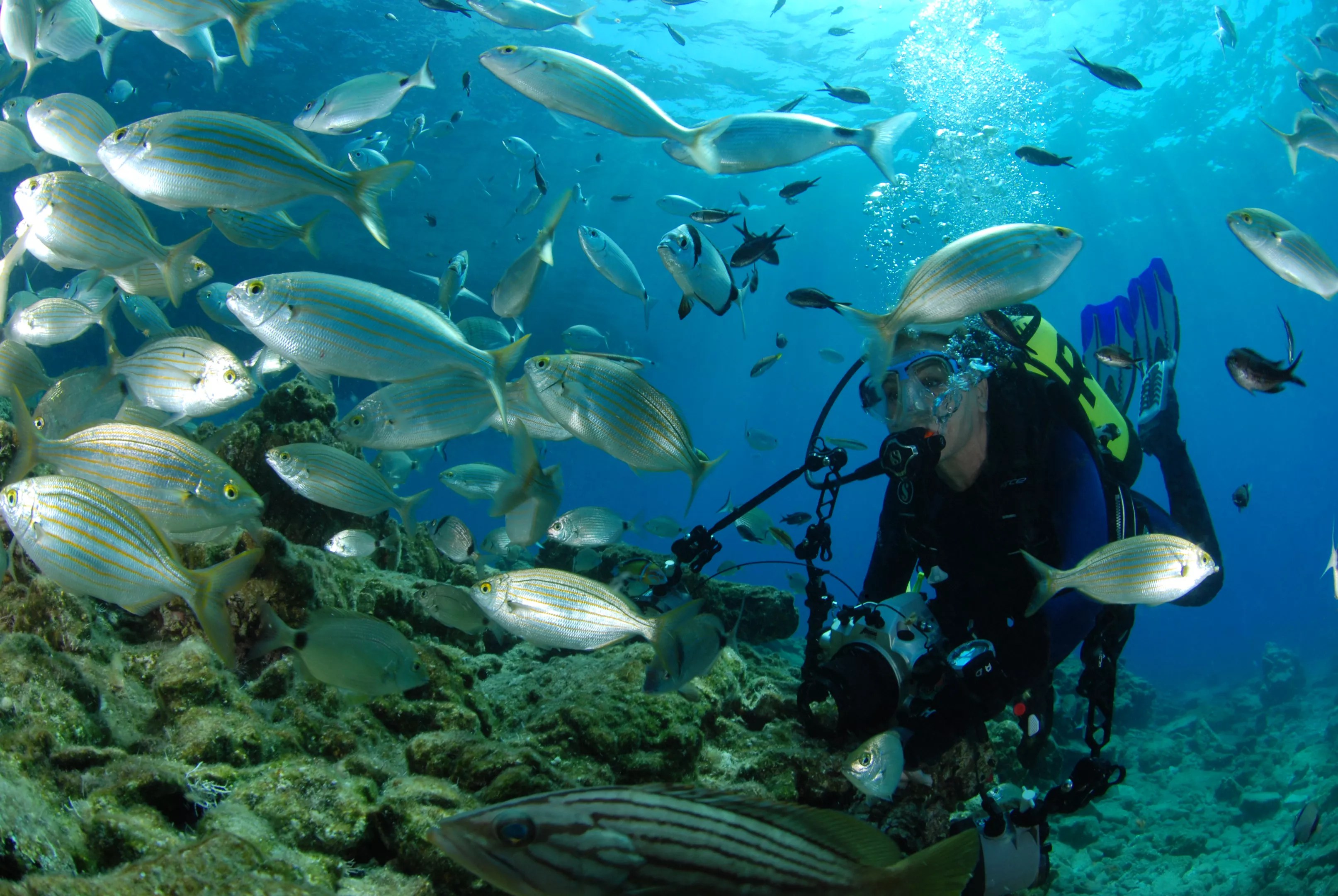 “We met them on the bottom of the ocean about 30 meters deep and then came up to about 20 to 23 meters,” Dinçkök said. “This is where we did the shooting. They’re interested when they see us because we were dressed in black. They saw all black and didn’t know what it was, but they’re very curious. They want to swim with you in harmony.”