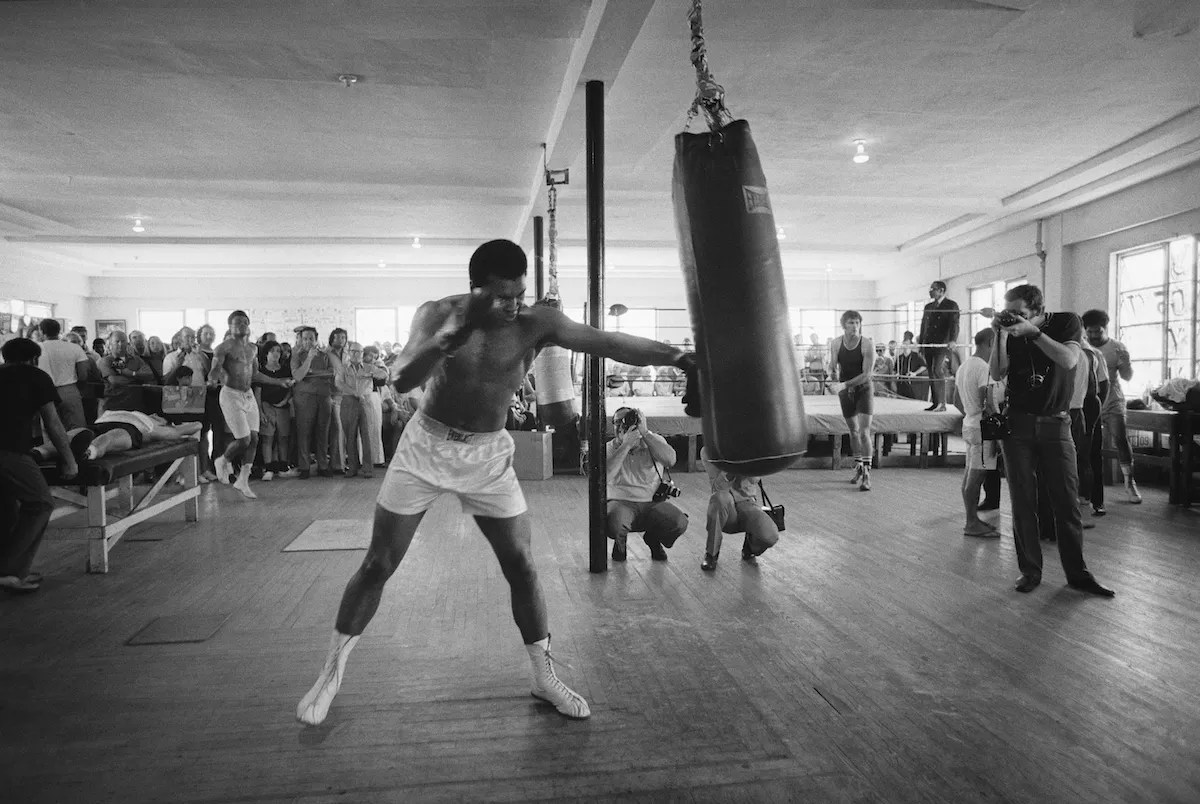 Muhammad Ali hits the punching bag at the 5th Street Gym in Miami Beach in February 1971.