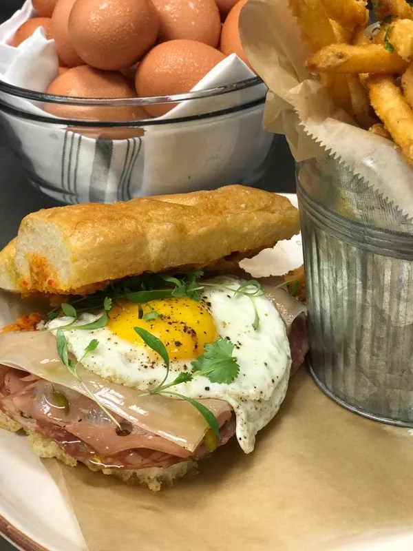 In terms of sandwiches, consider the focaccia fried egg melt ($18), topped with mortadella, salami, soppressata, manchego, piquillos, house-made olive spread, and an egg. For something a bit lighter, try the avocado toast crowned with feta cheese and pomegranate.