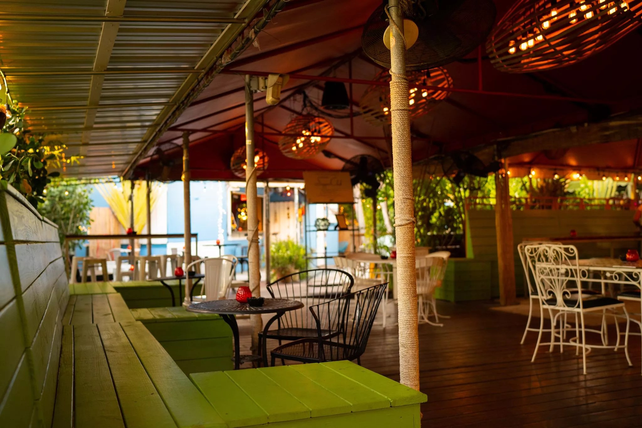 While the indoor dining area remains closed, the vintage indoor bar is open for socially distanced cocktailing on weekends. The outdoor bar and  El Toro Taco are open every night.