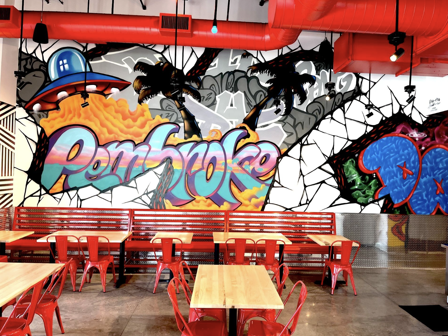 The new Dave’s Hot Chicken location in Pembroke Pines has a graffiti-filled mural.